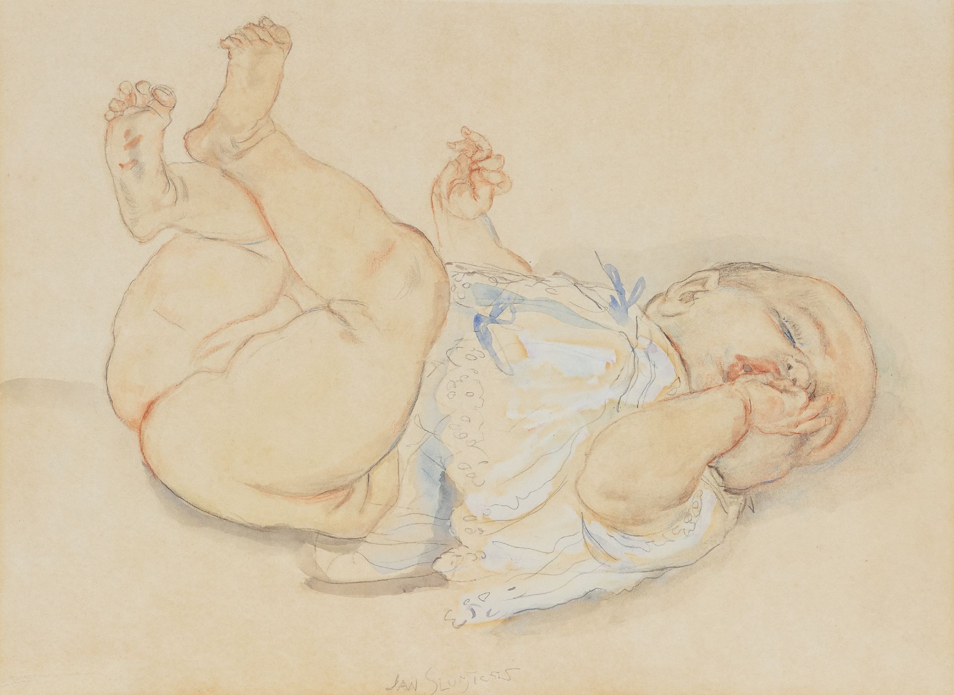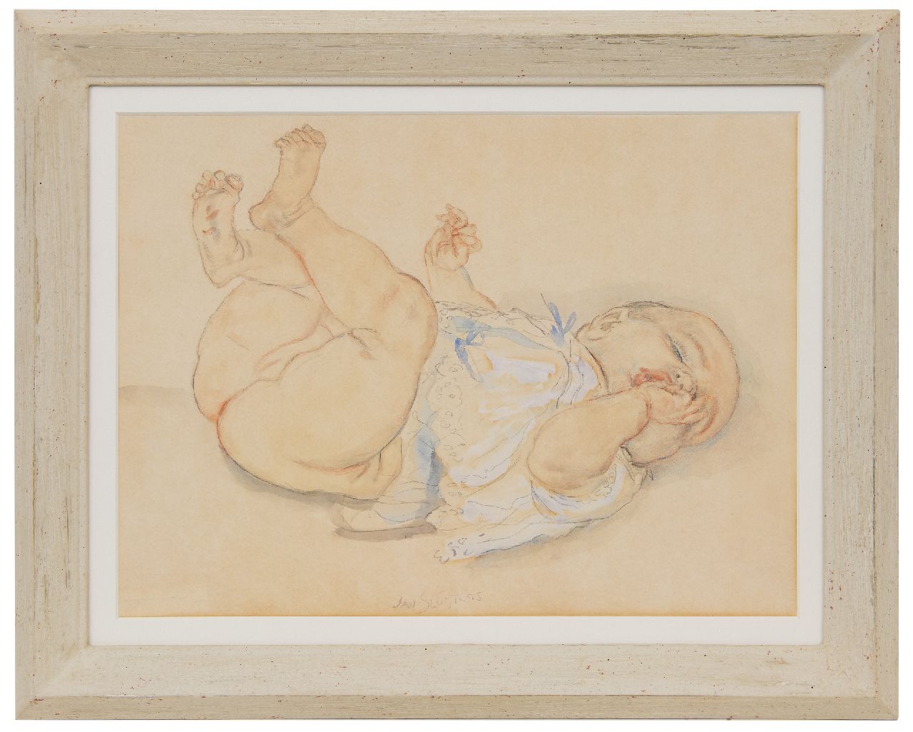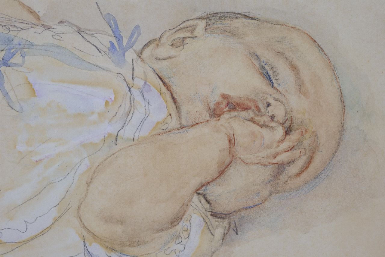 Jan Sluijters kunstwerk • aquarel • tekening • te koop Duimzuigende baby