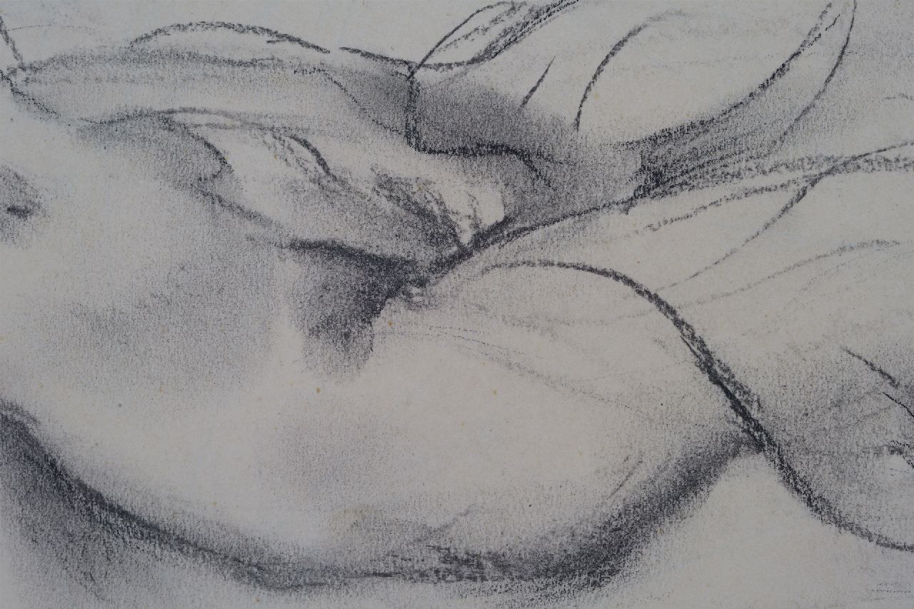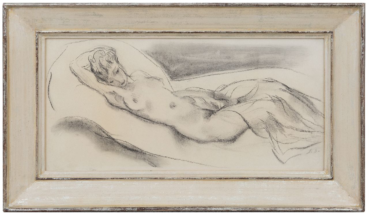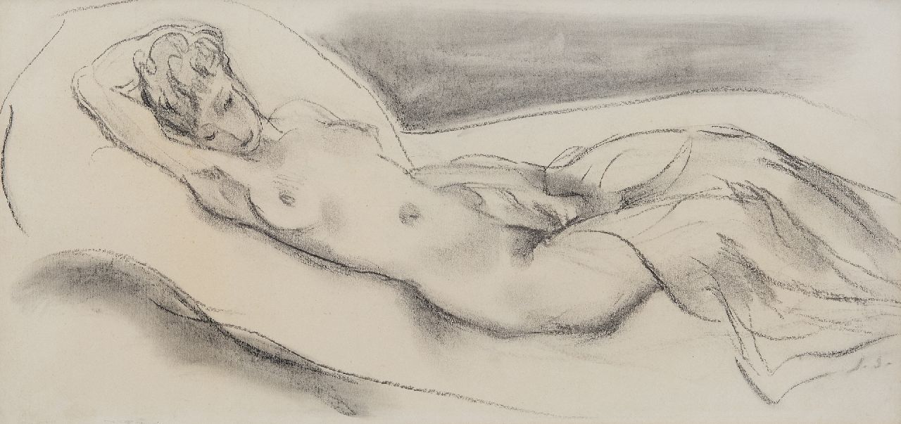 houtskool op papier 25,0 x 50,0 cm, gesigneerd rechtsonder met initialen en te dateren ca. 1943