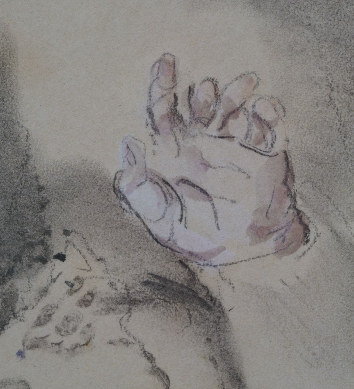 houtskool en aquarel op papier 37,0 x 27,2 cm, gesigneerd rechtsonder