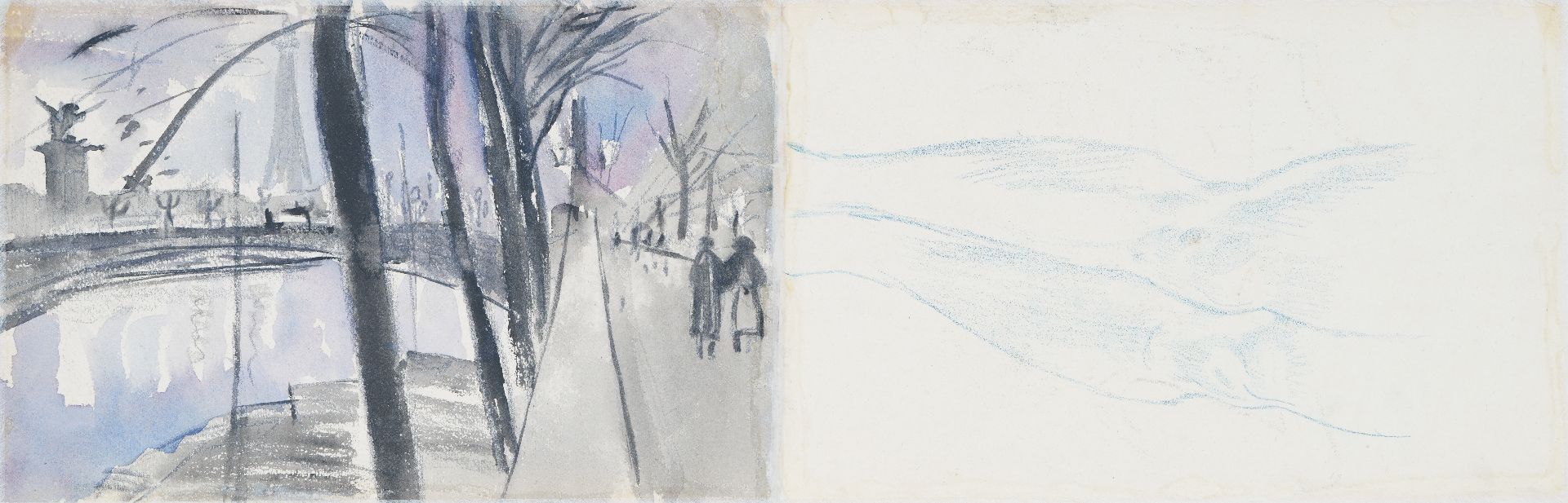 aquarel op papier 11,5 x 36,8 cm, gesigneerd linksonder
