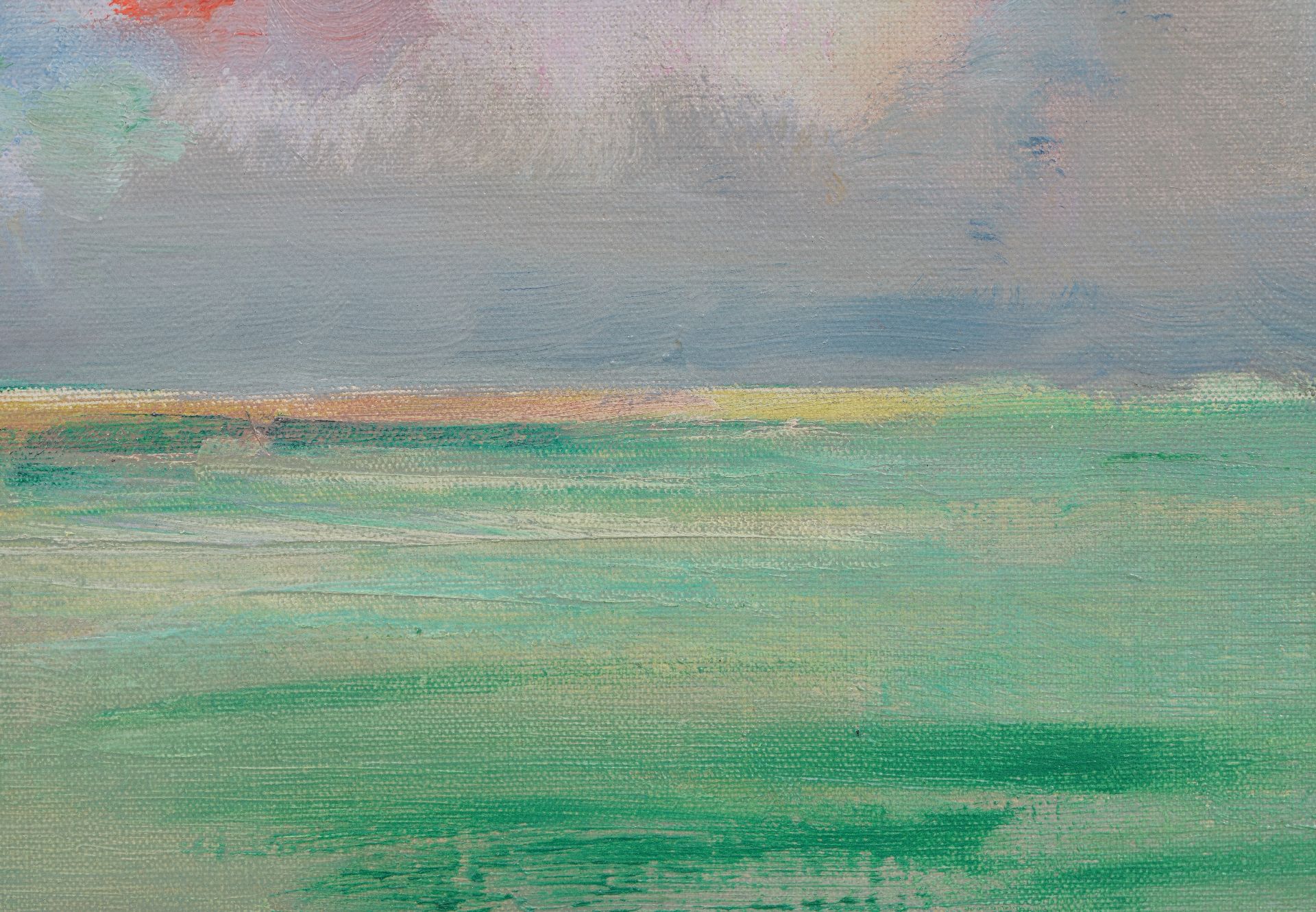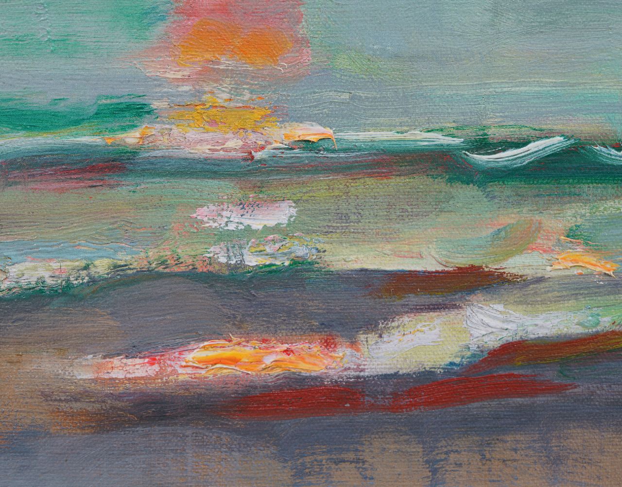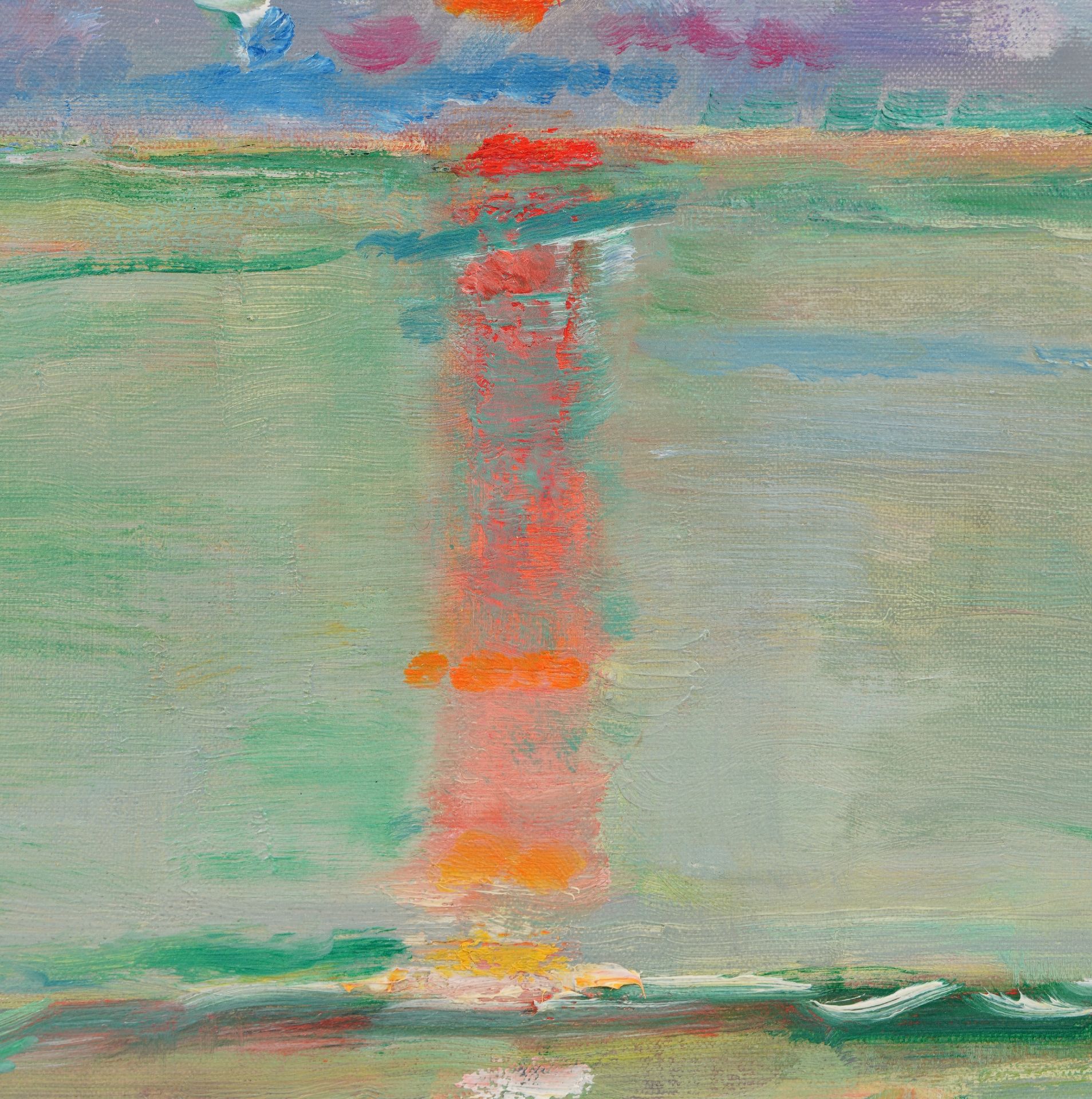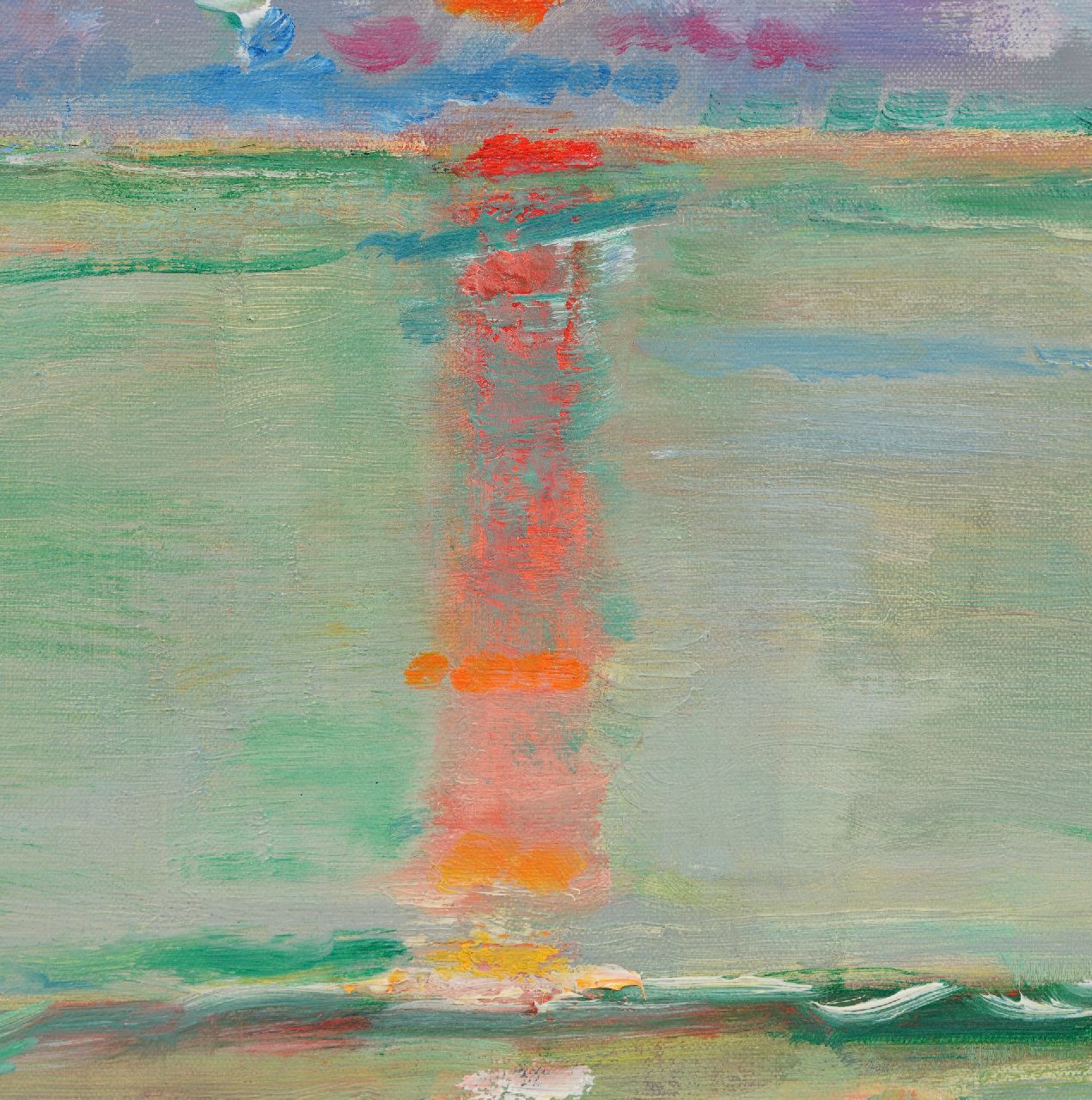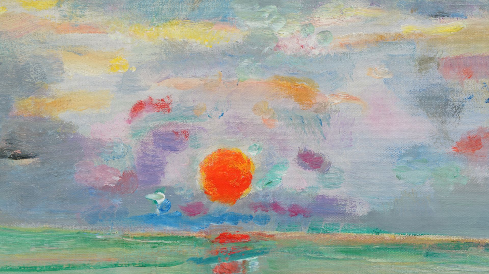 Sluijters zocht in zijn werk naar de expressie van sterk innerlijke gevoelens door middel van verandering van zichtbare vormen en een uitbundig, niet realistisch kleurgebruik. Dat is terug te zien in deze ondergaande zon, die hij schilderde in Zeeland en die, volgens zijn dochter Lies Kuijper-Sluijters, te dateren is omstreeks 1938. Het neemt daarmee een bijzondere plek in zijn oeuvre in, gezien landschappen voornamelijk in zijn vroege werk voorkomen. Het tweede deel van Sluijters’ schildersleven, na 1920, wordt namelijk gekenmerkt door een gematigd impressionistische, figuratieve stijl. Het was de tijd waarin hij gold als dé portretschilder van Nederland. In opdracht schilderde hij talrijke prominente landgenoten uit academische kringen, de muziek- en theaterwereld en het bedrijfsleven.