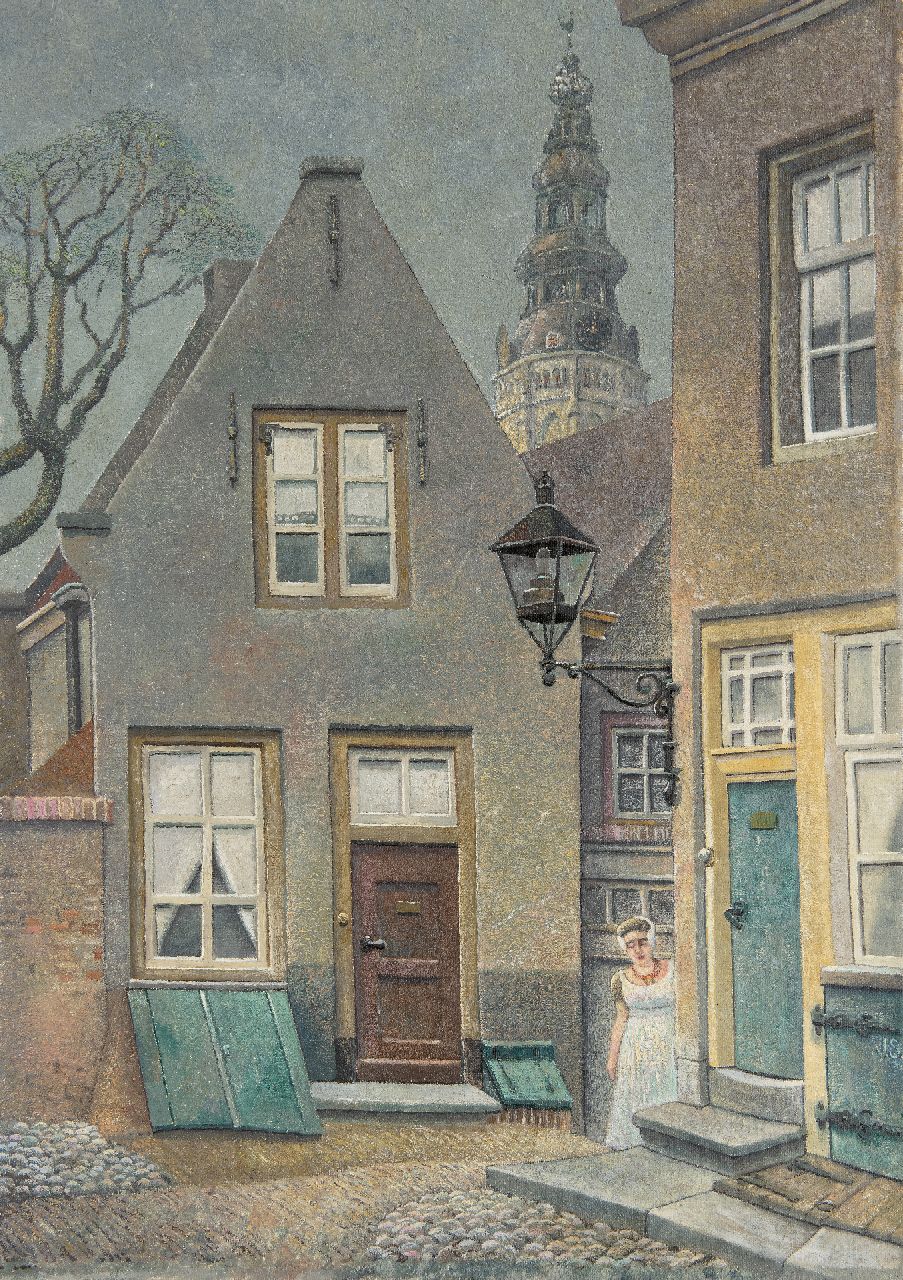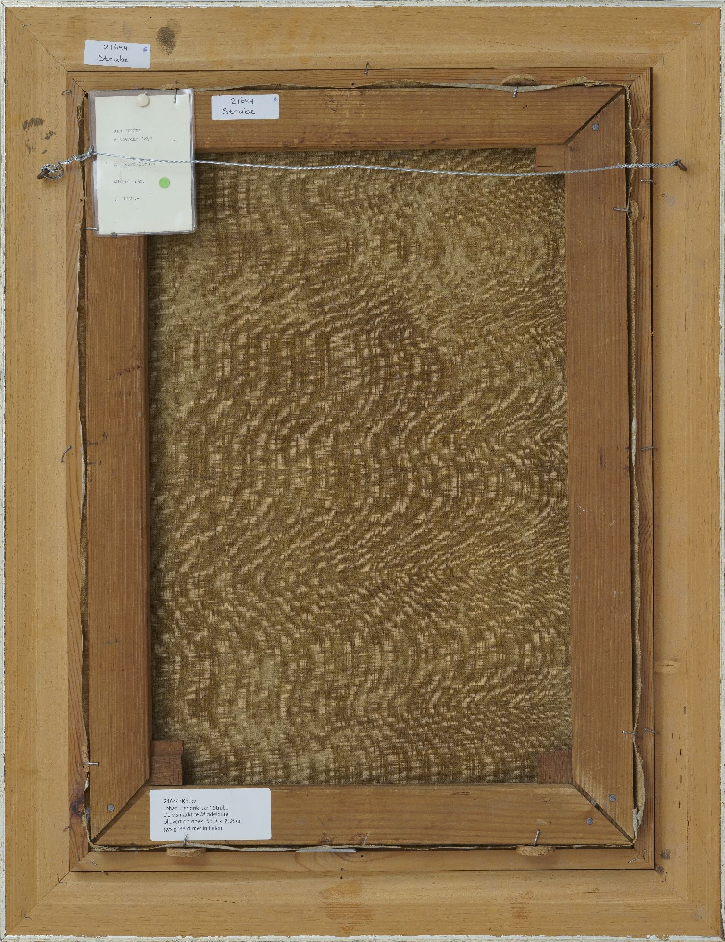 Jan Strube kunstwerk • schilderij • te koop De vismarkt in Middelburg met de Nieuwe Kerk