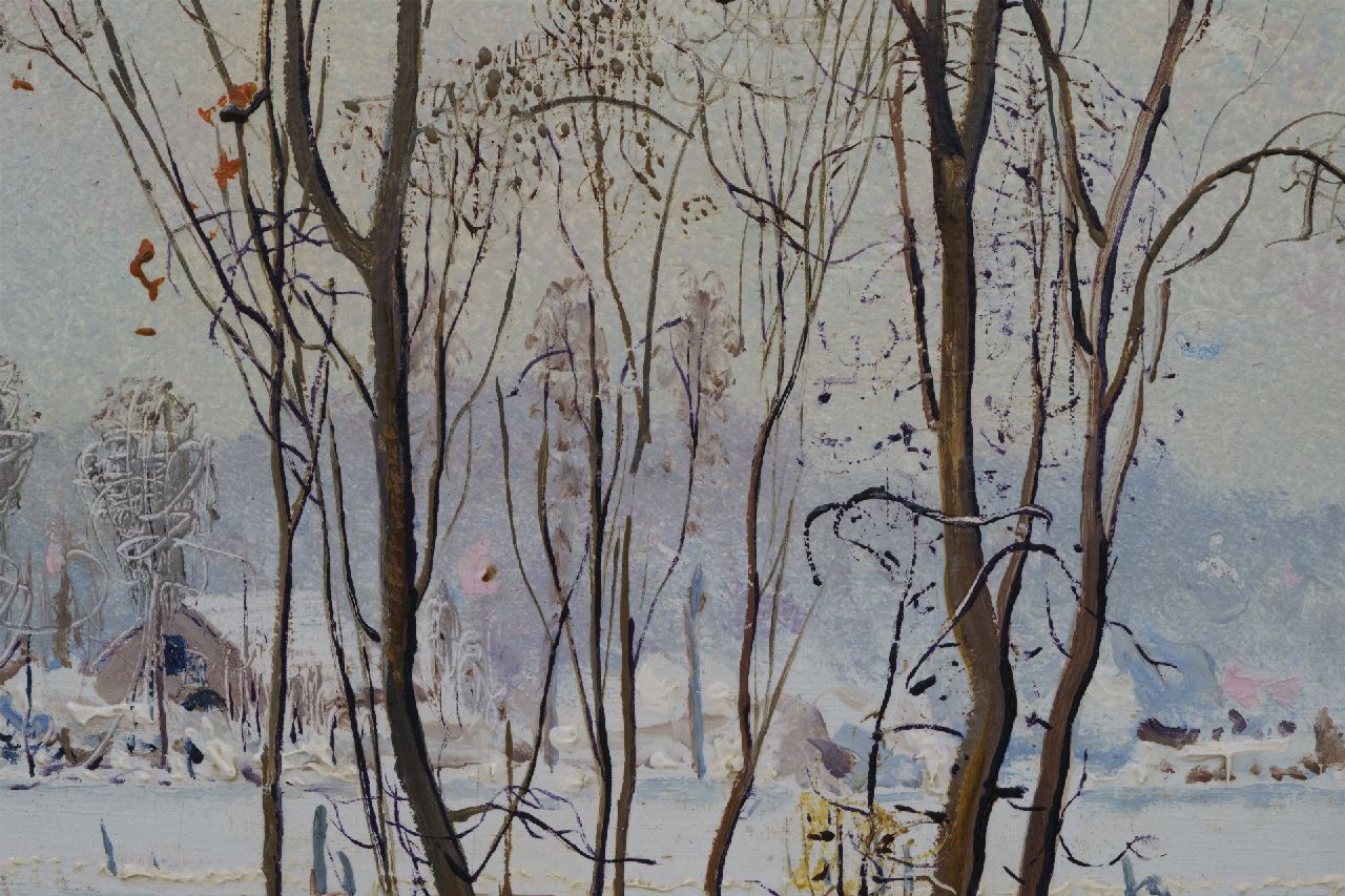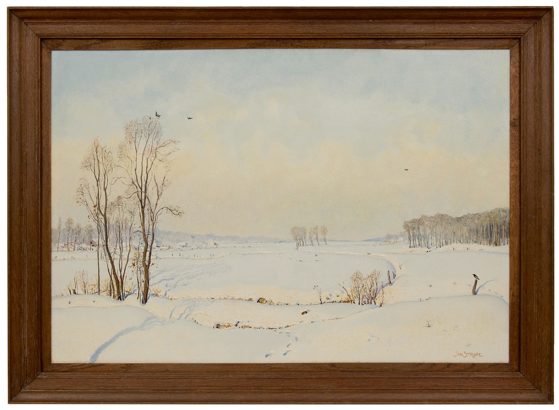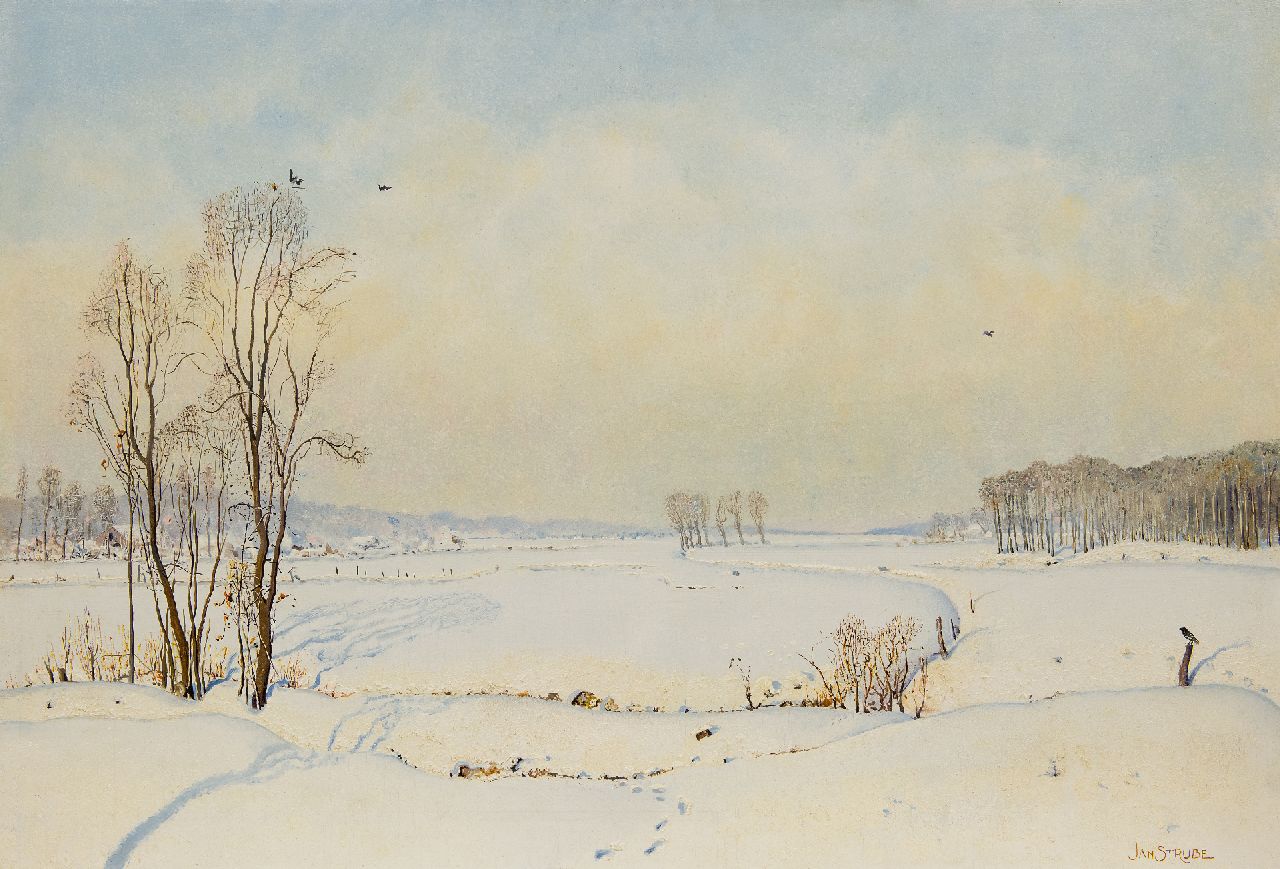 Jan Strube kunstwerk • schilderij • voorheen te koop Het Markdal bij Breda in de sneeuw