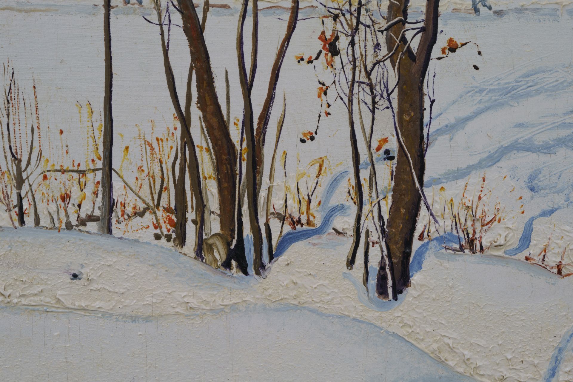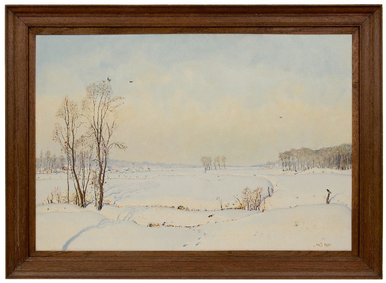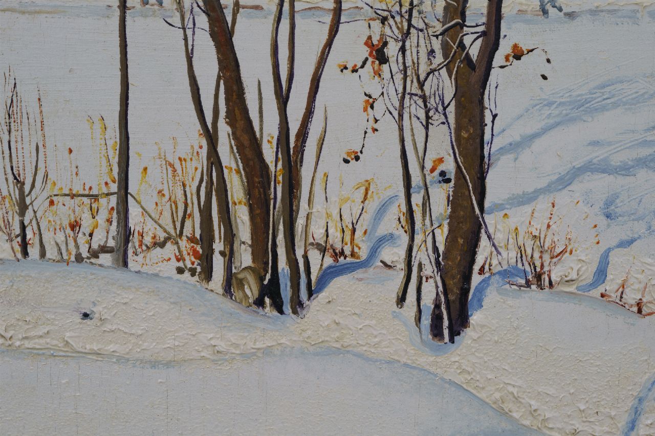 Jan Strube kunstwerk • schilderij • voorheen te koop Het Markdal bij Breda in de sneeuw