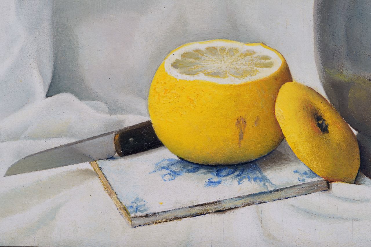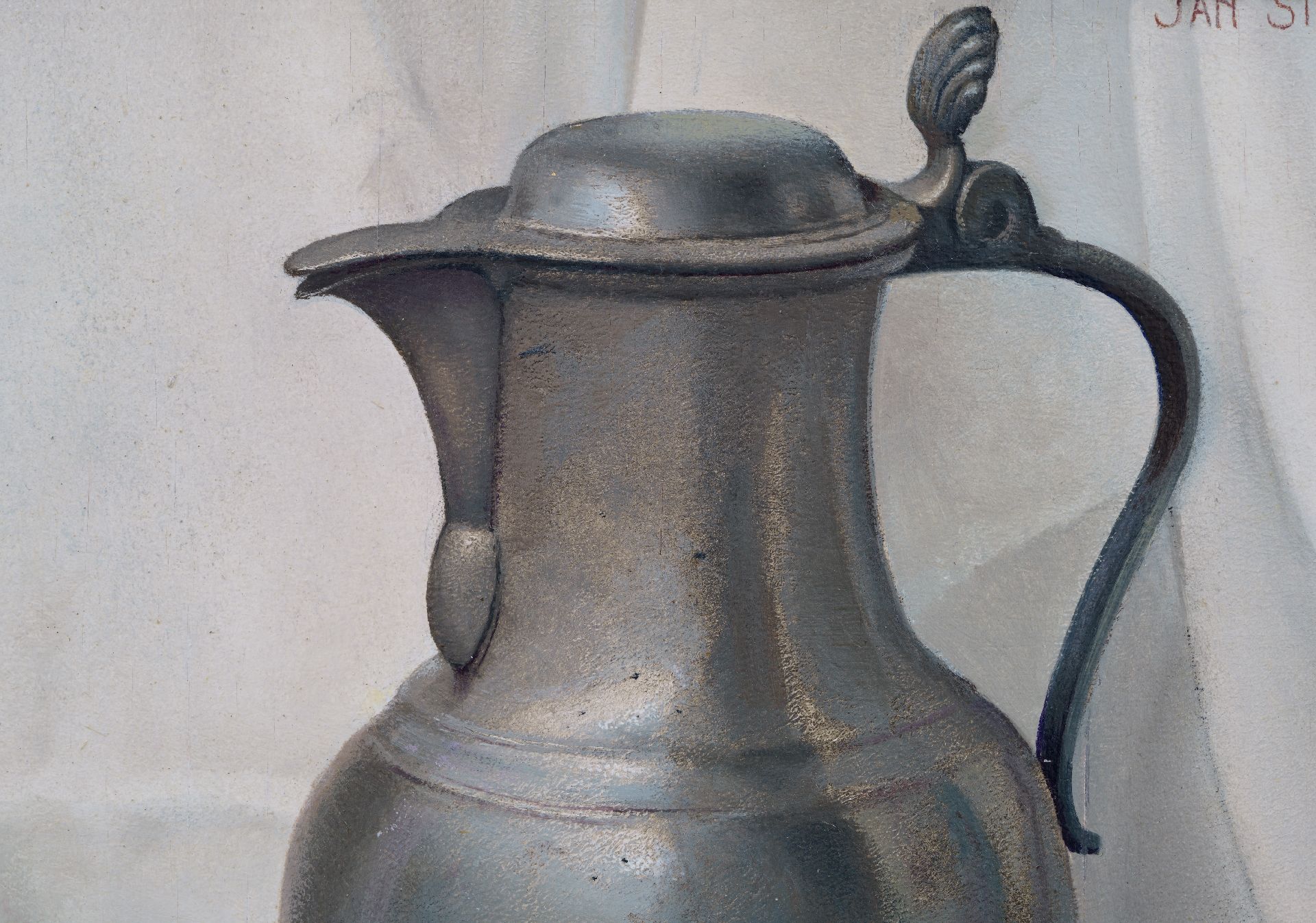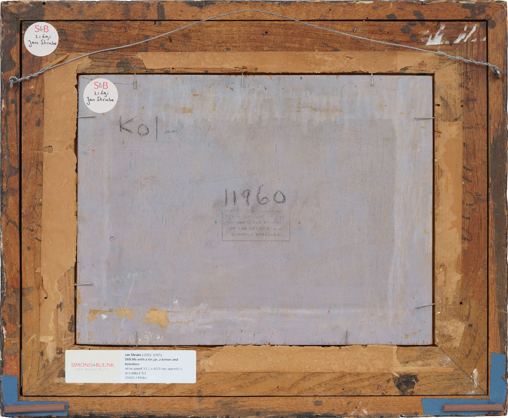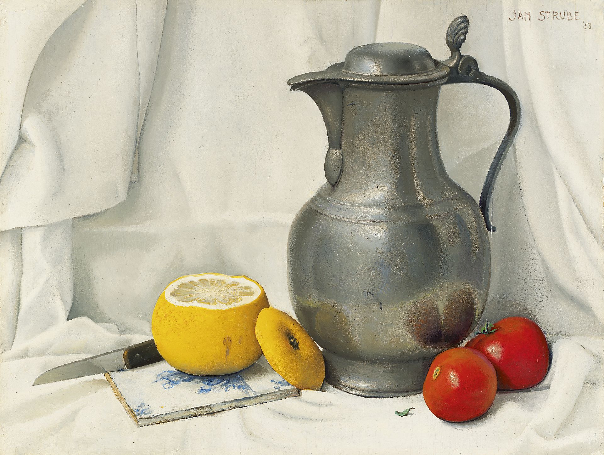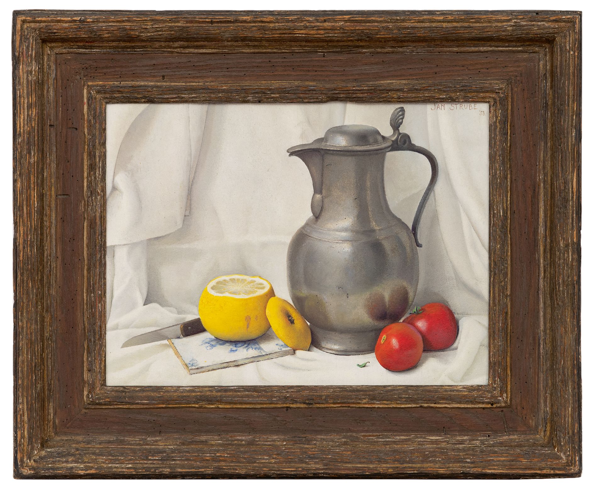 Jan Strube kunstwerk • schilderij • te koop Stilleven met tinnen kan, citroen en tomaten