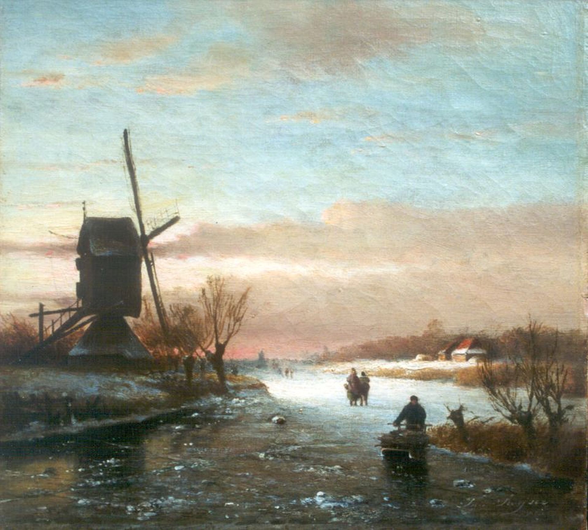 Jan Swijser kunstwerk • schilderij • voorheen te koop Winterlandschap met schaatsers