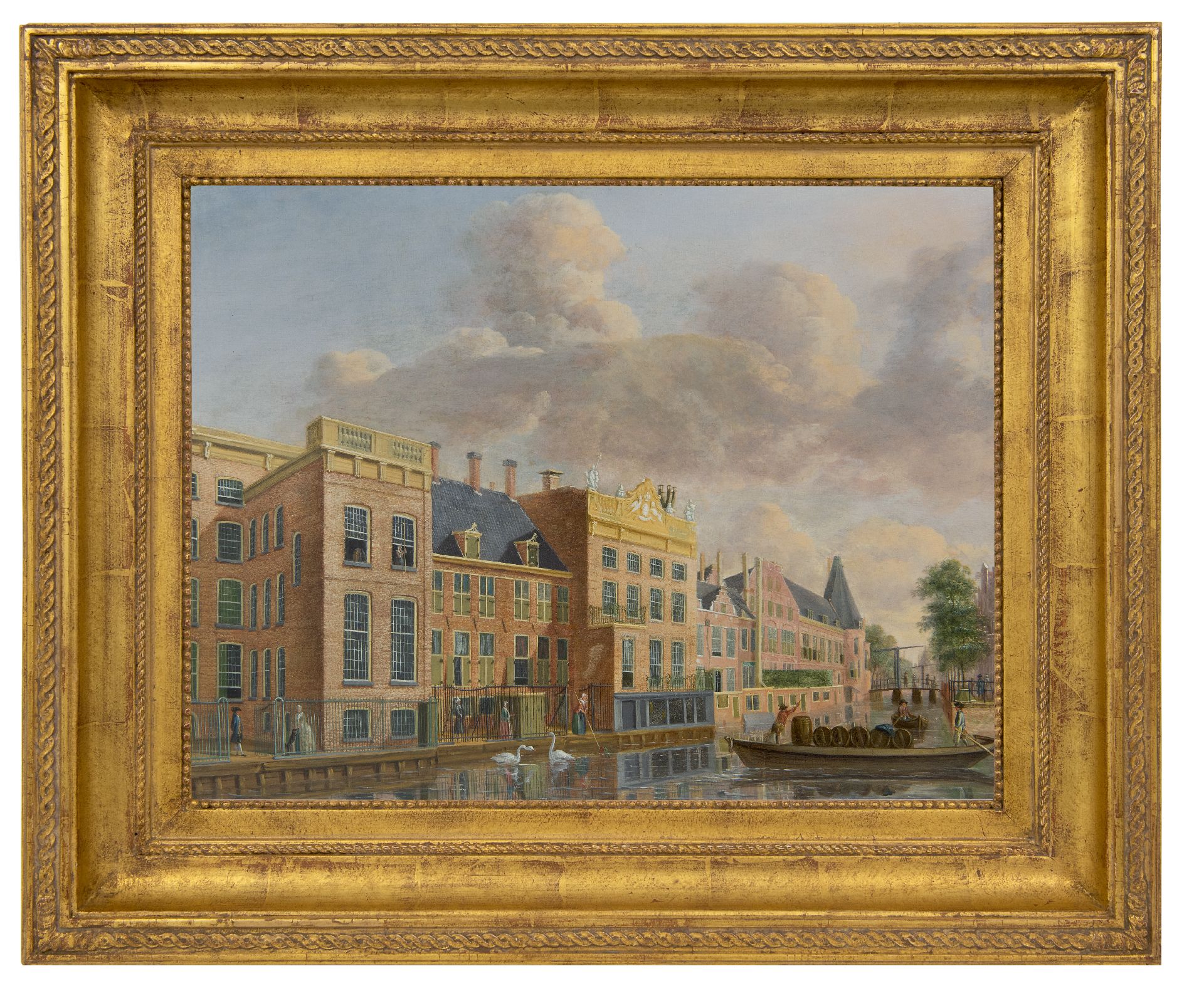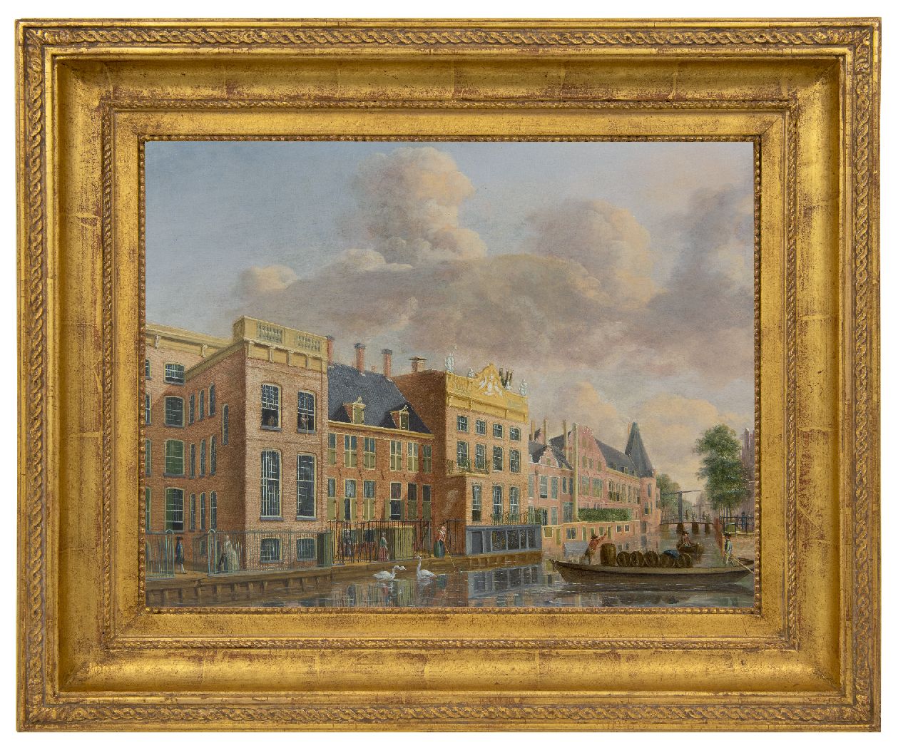 Jan ten Compe kunstwerk • schilderij • te koop Gezicht op de Amstel met de huizen aan de Doelenstraat en de Kloveniersdoelen, Amsterdam