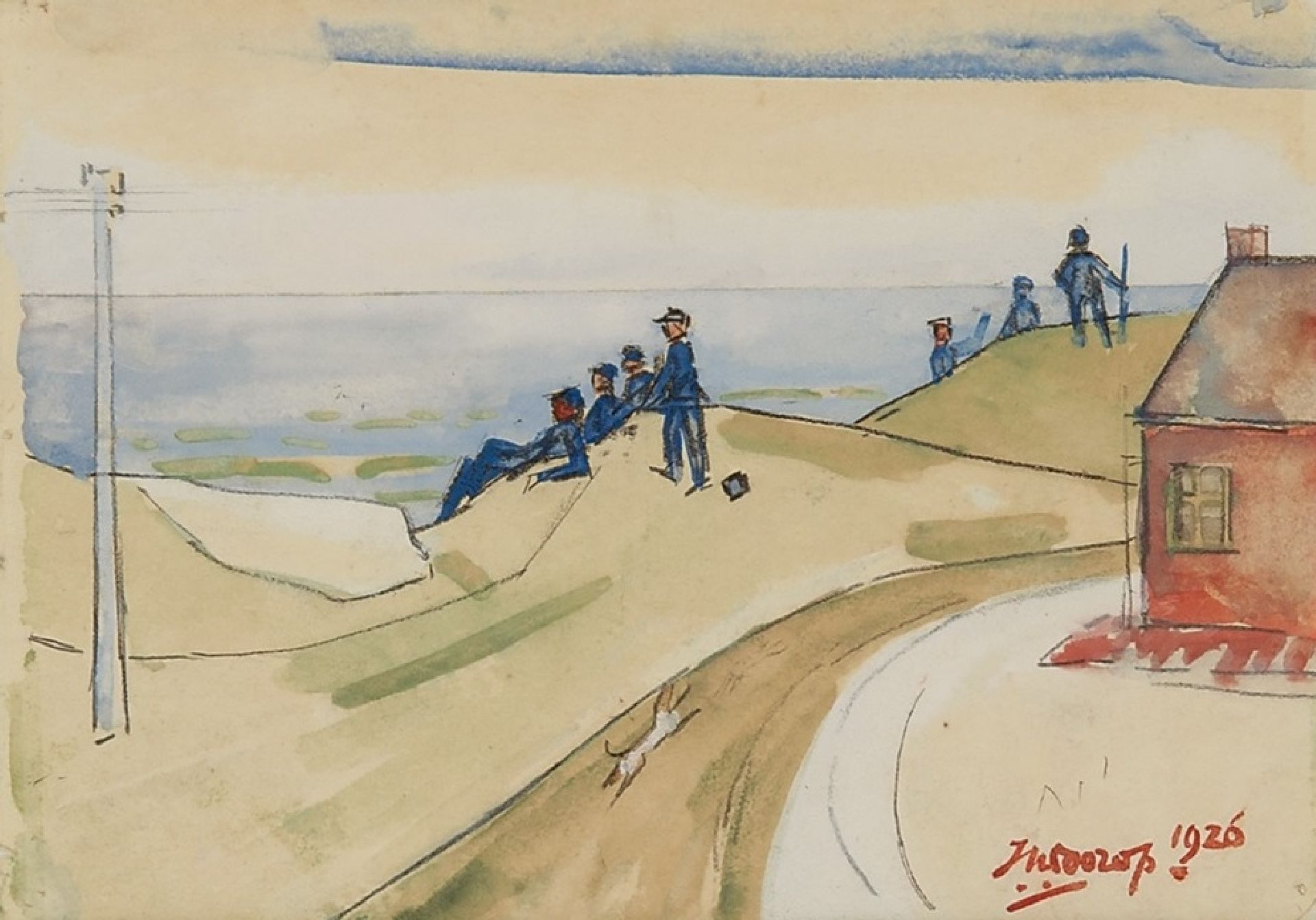 potlood, krijt en aquarel op papier 11,0 x 15,5 cm, gesigneerd rechtsonder en gedateerd 1926