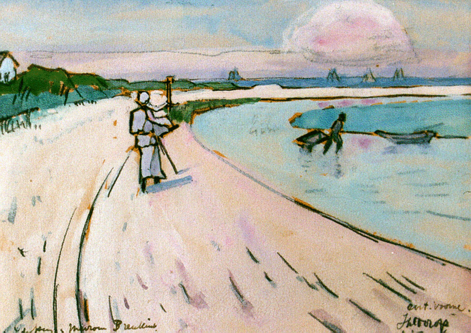 Jan Toorop kunstwerk • aquarel • tekening • voorheen te koop Langs het strand van Oostvoorne