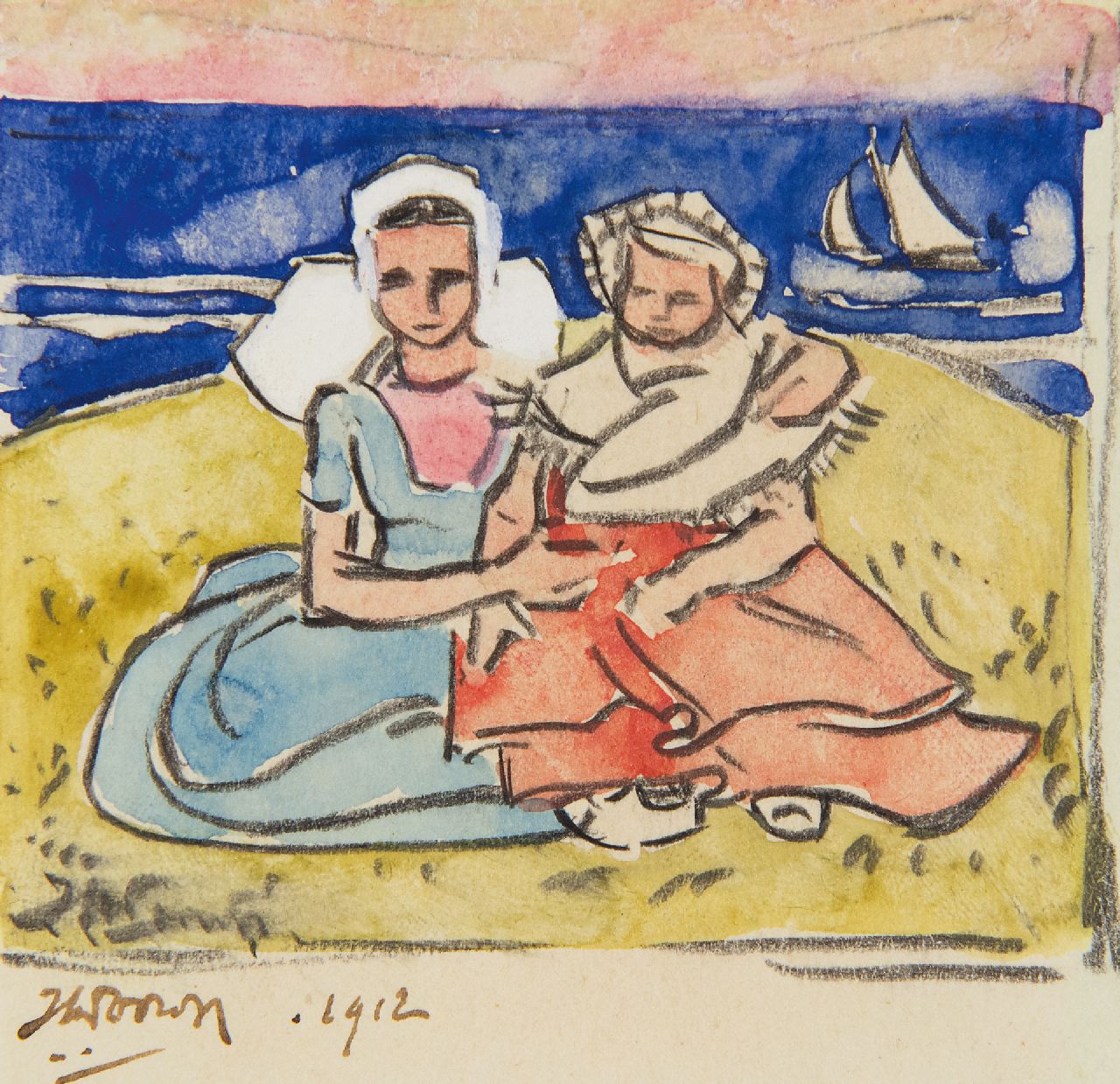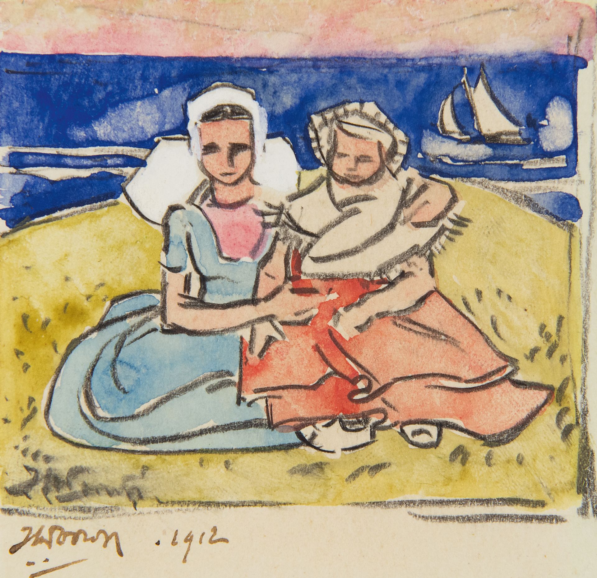 Jan Toorop kunstwerk • aquarel • tekening • voorheen te koop Op het duin bij Domburg