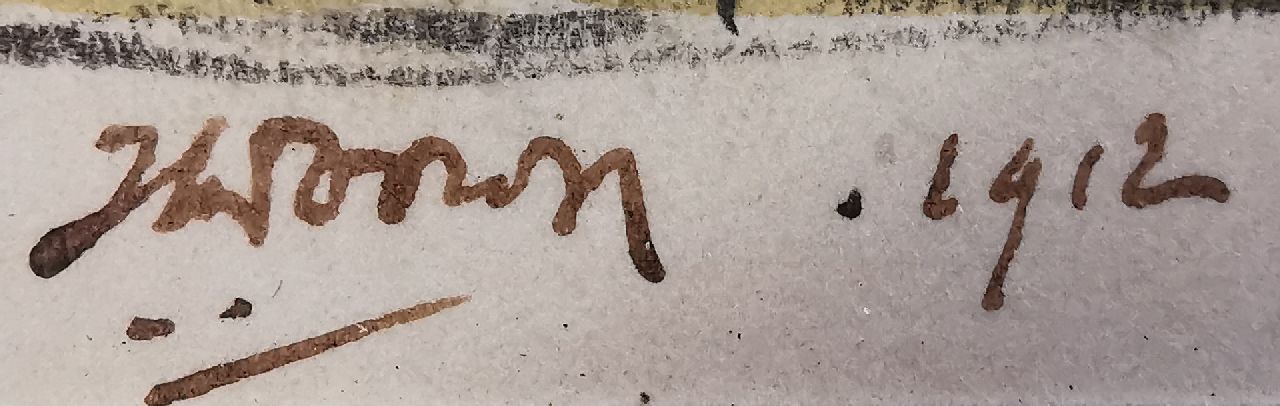 zwart krijt en aquarel op papier 6,2 x 6,6 cm, gesigneerd linksonder (tweemaal) en gedateerd 1912