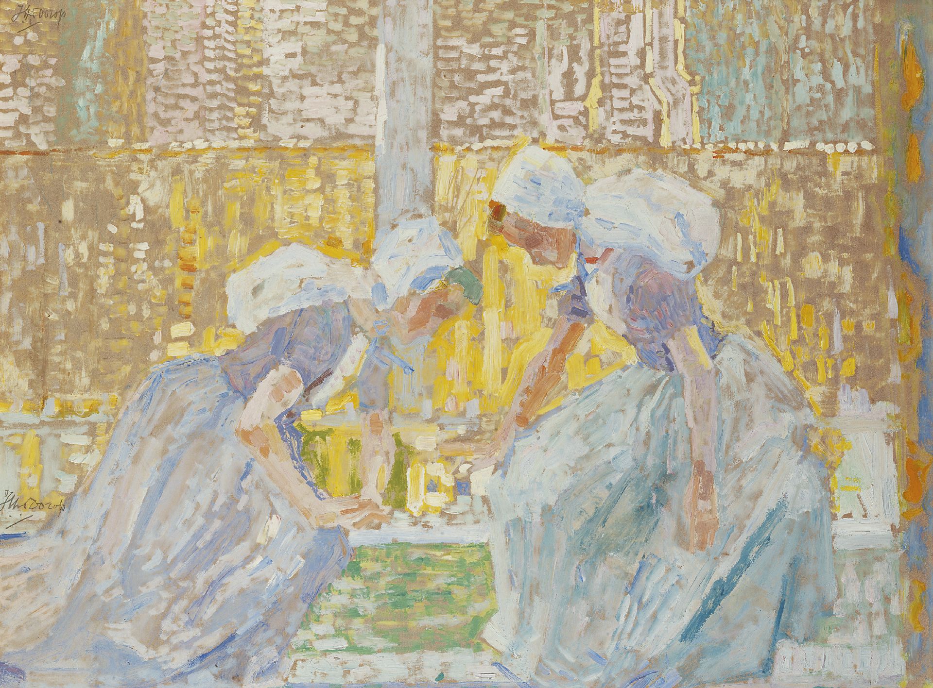 Jan Toorop kunstwerk • schilderij • voorheen te koop Dammende Zeeuwse meisjes