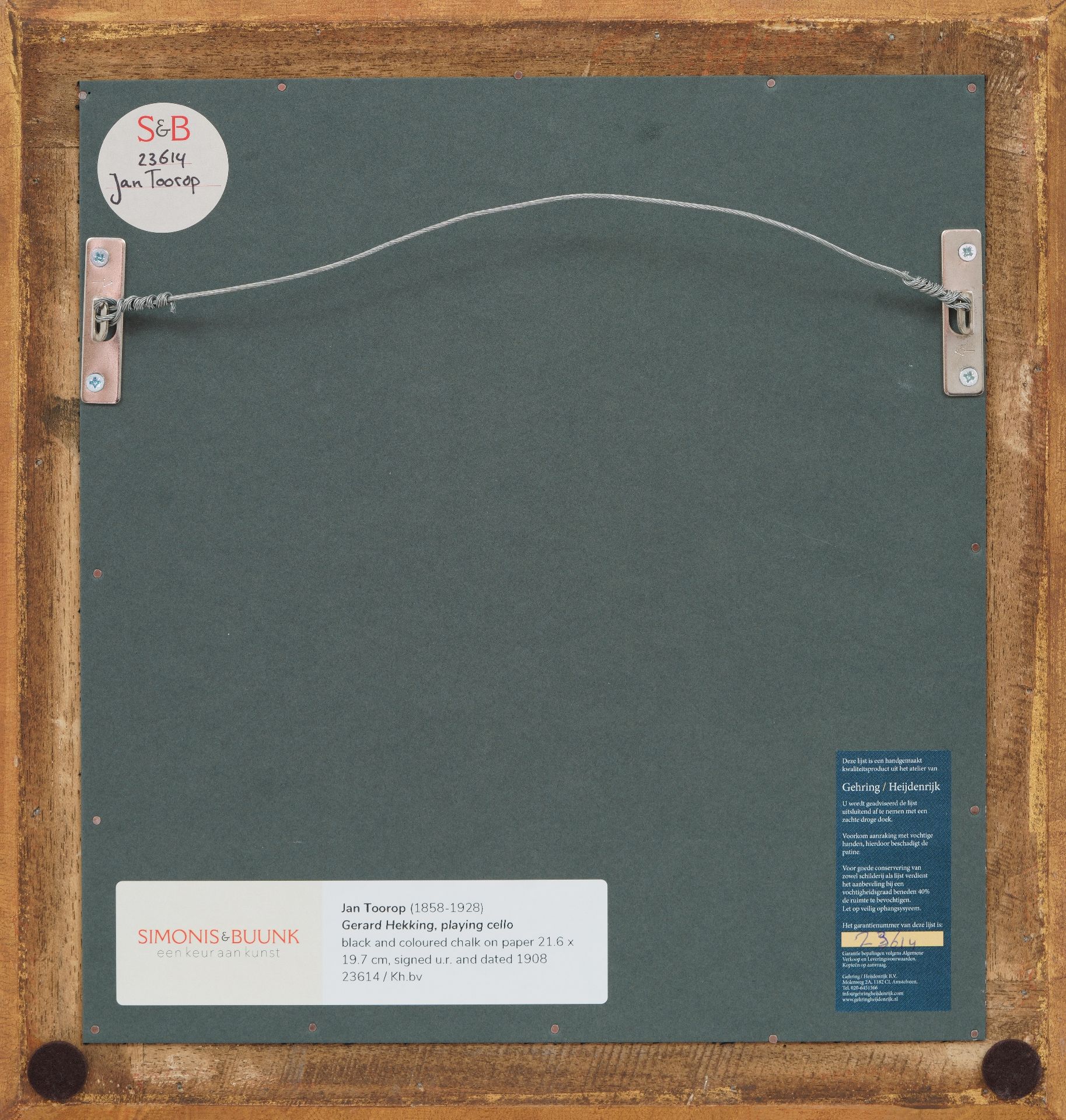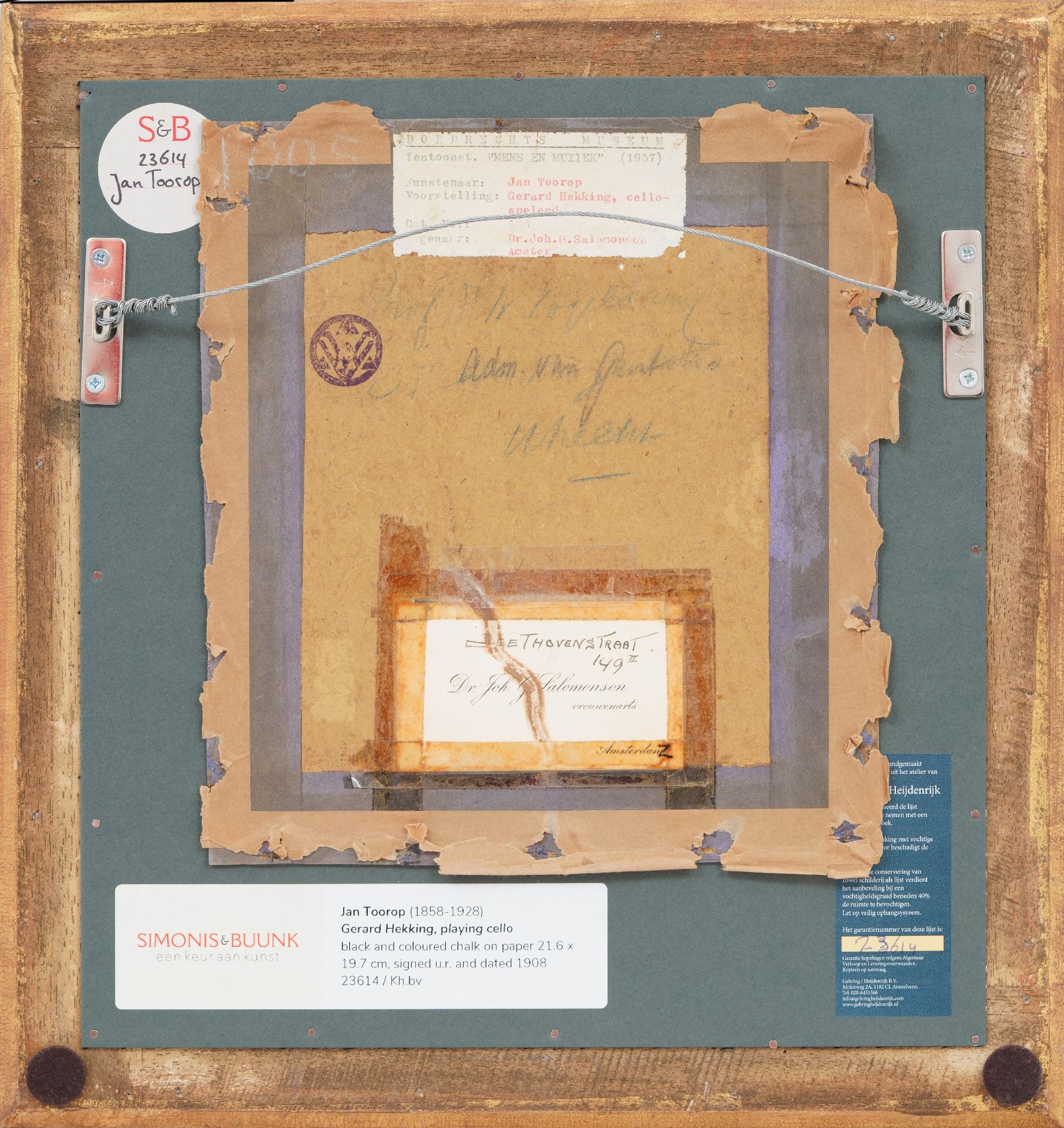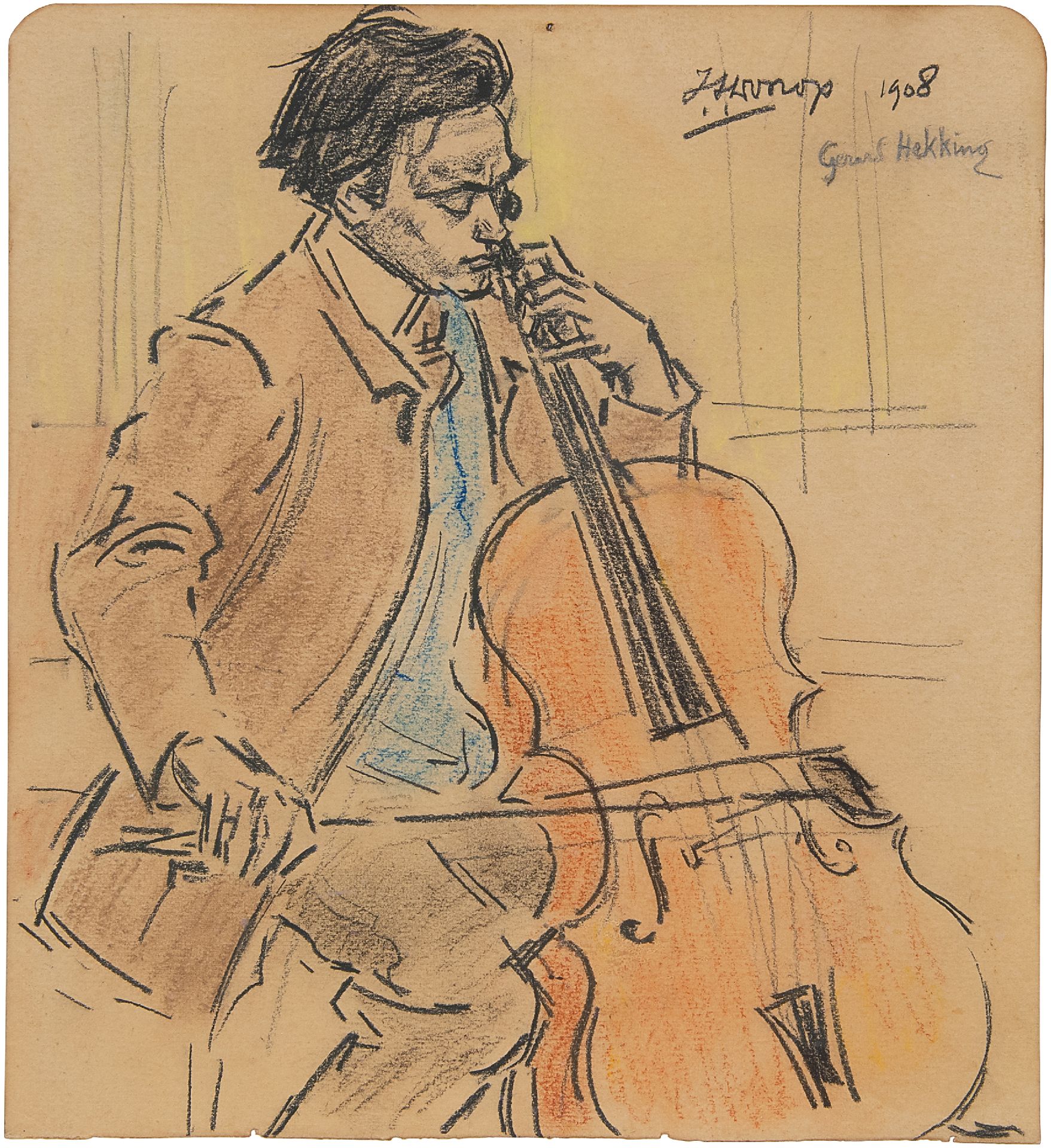 Jan Toorop kunstwerk • aquarel • tekening • te koop Gerard Hekking, cellospelend