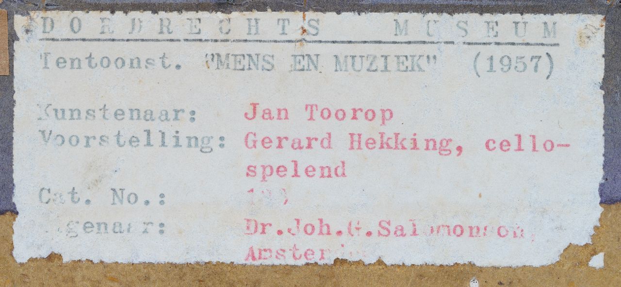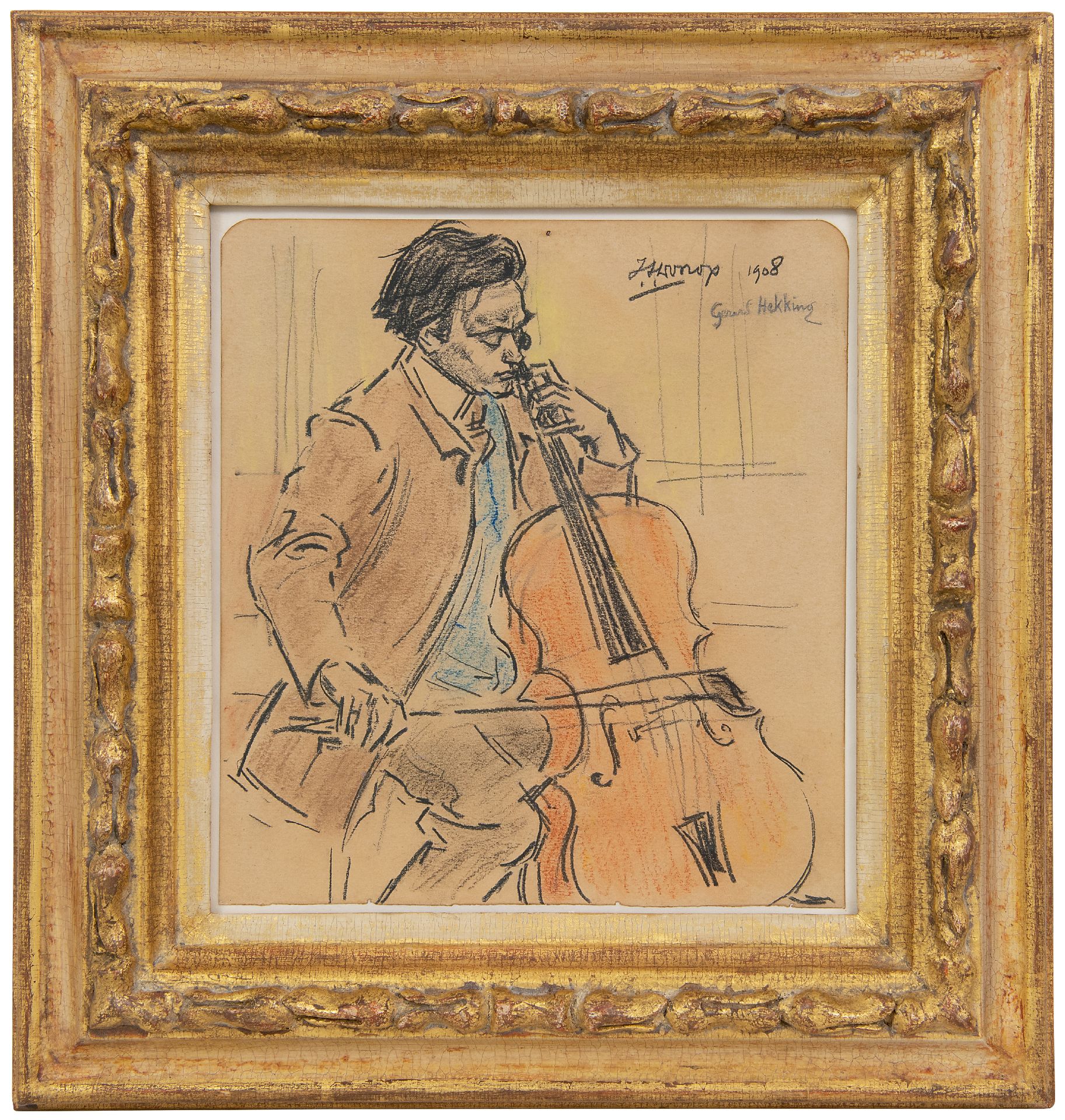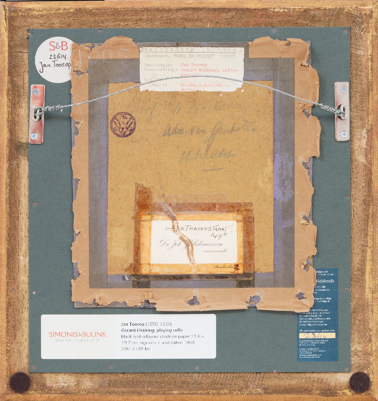 Jan Toorop kunstwerk • aquarel • tekening • te koop Gerard Hekking, cellospelend