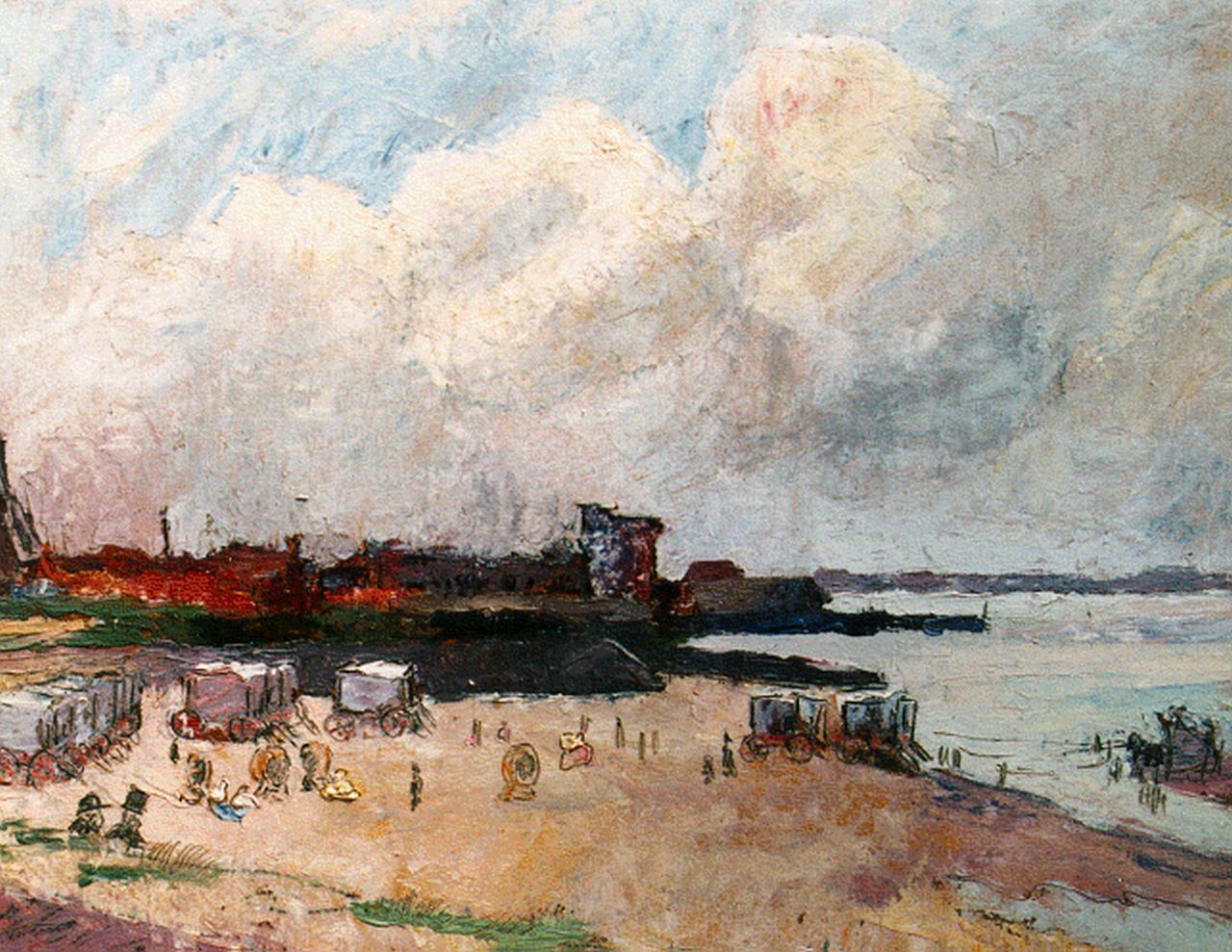 Jan Toorop kunstwerk • schilderij • voorheen te koop Gezicht op badstrand Vlissingen vanaf de Nolledijk
