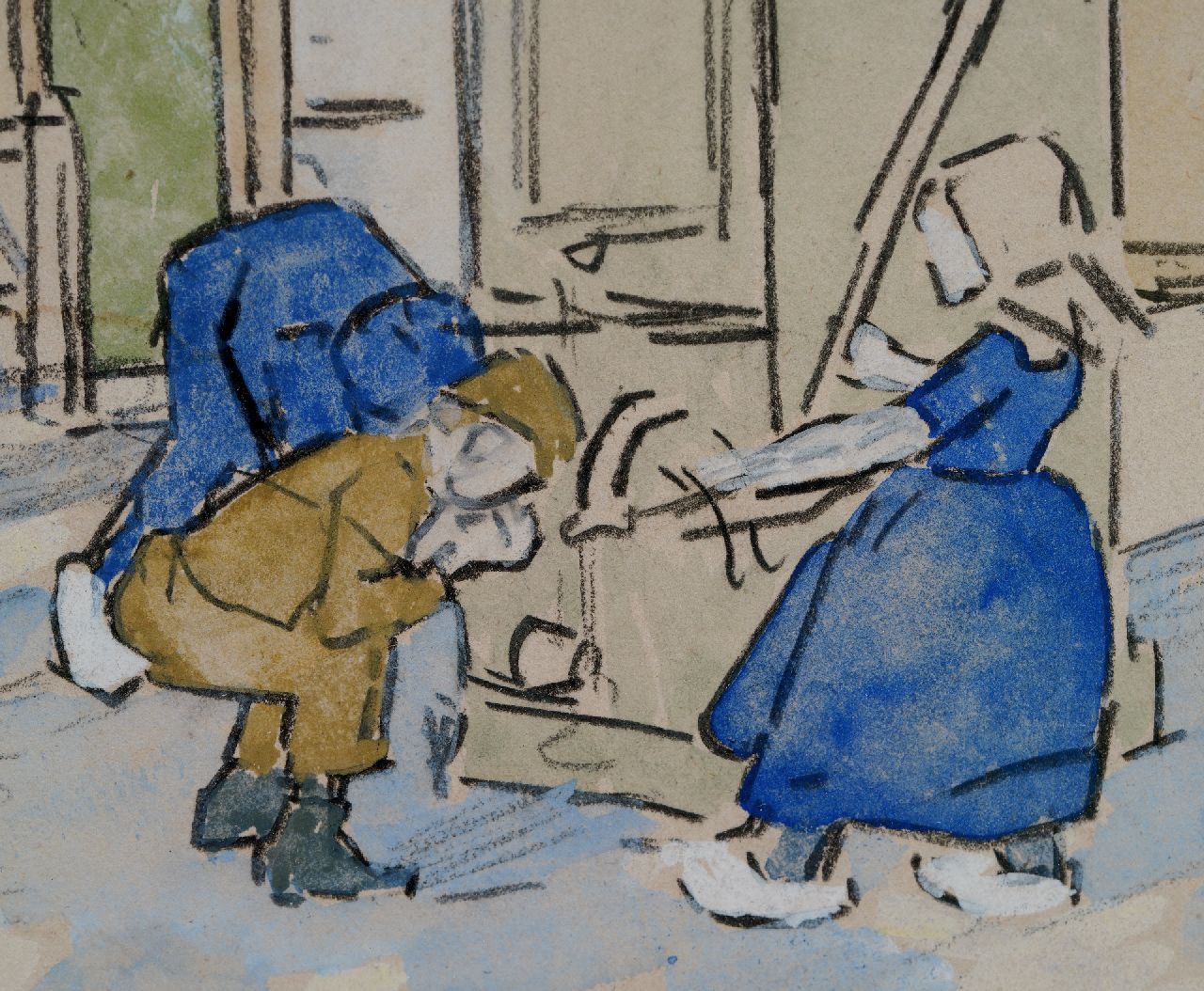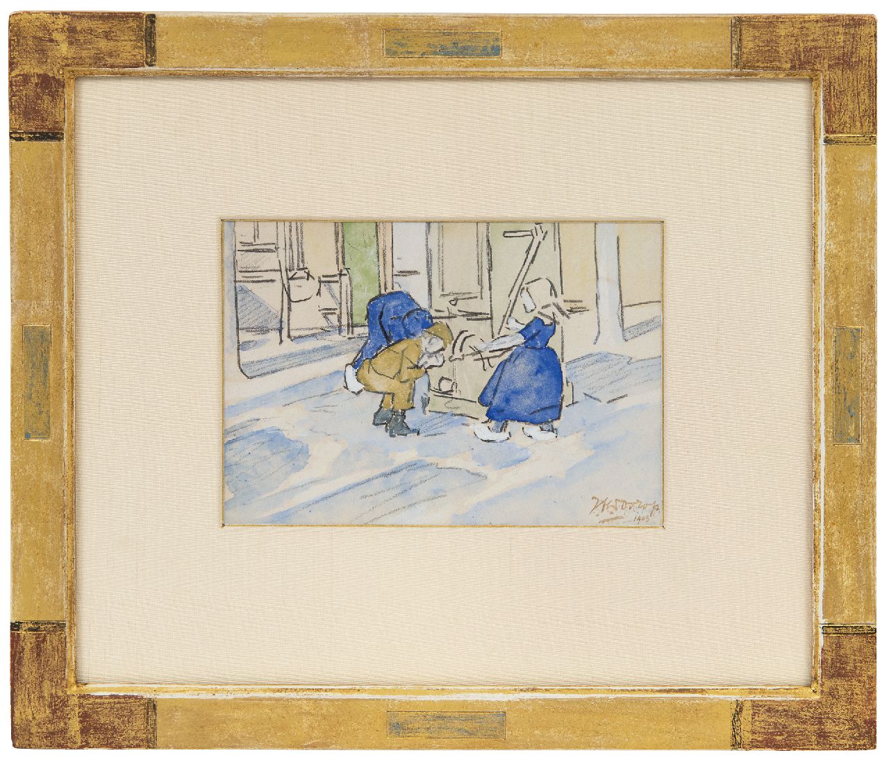 Jan Toorop kunstwerk • aquarel • tekening • voorheen te koop Kinderen bij een dorpspomp