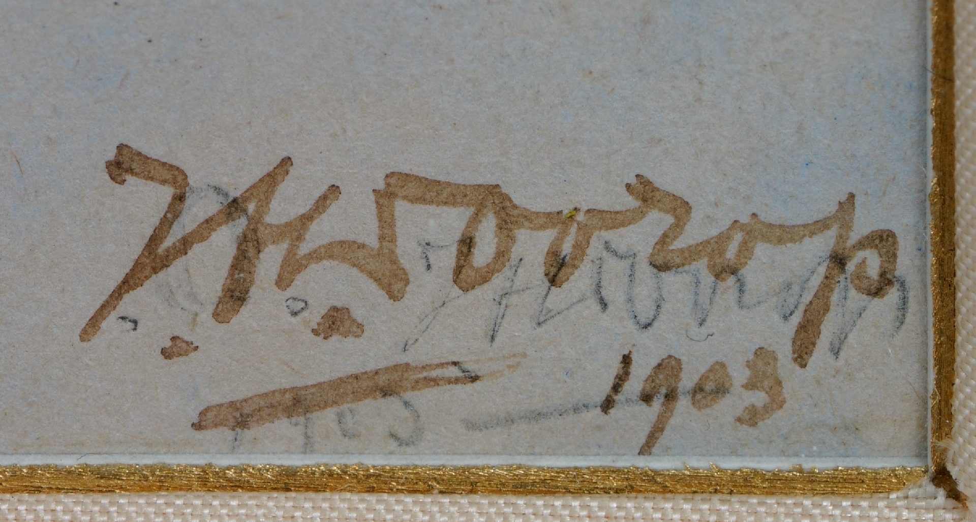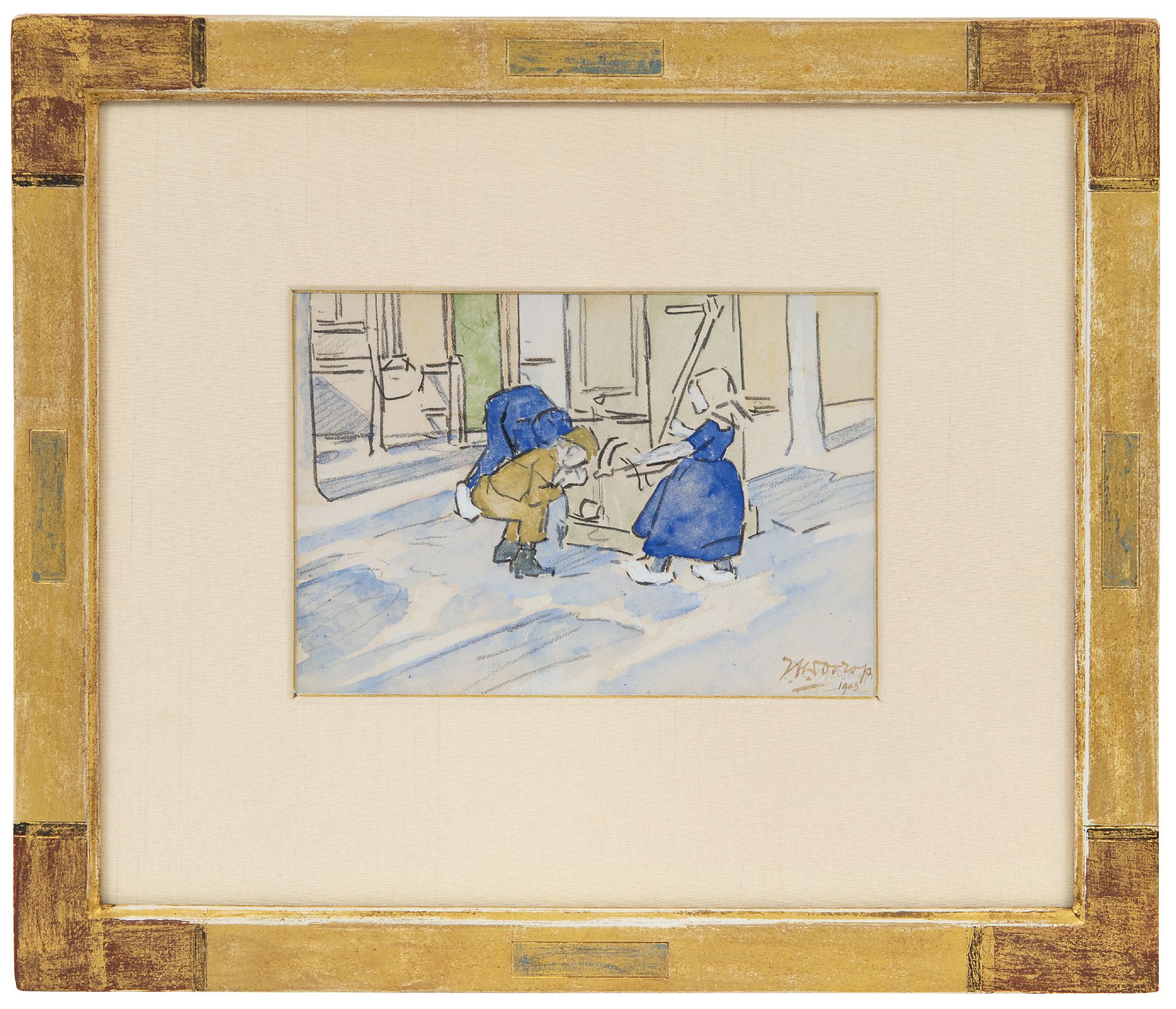 zwart krijt en aquarel op papier 11,3 x 15,8 cm, gesigneerd rechtsonder (dubbel) en gedateerd 1903 (dubbel)