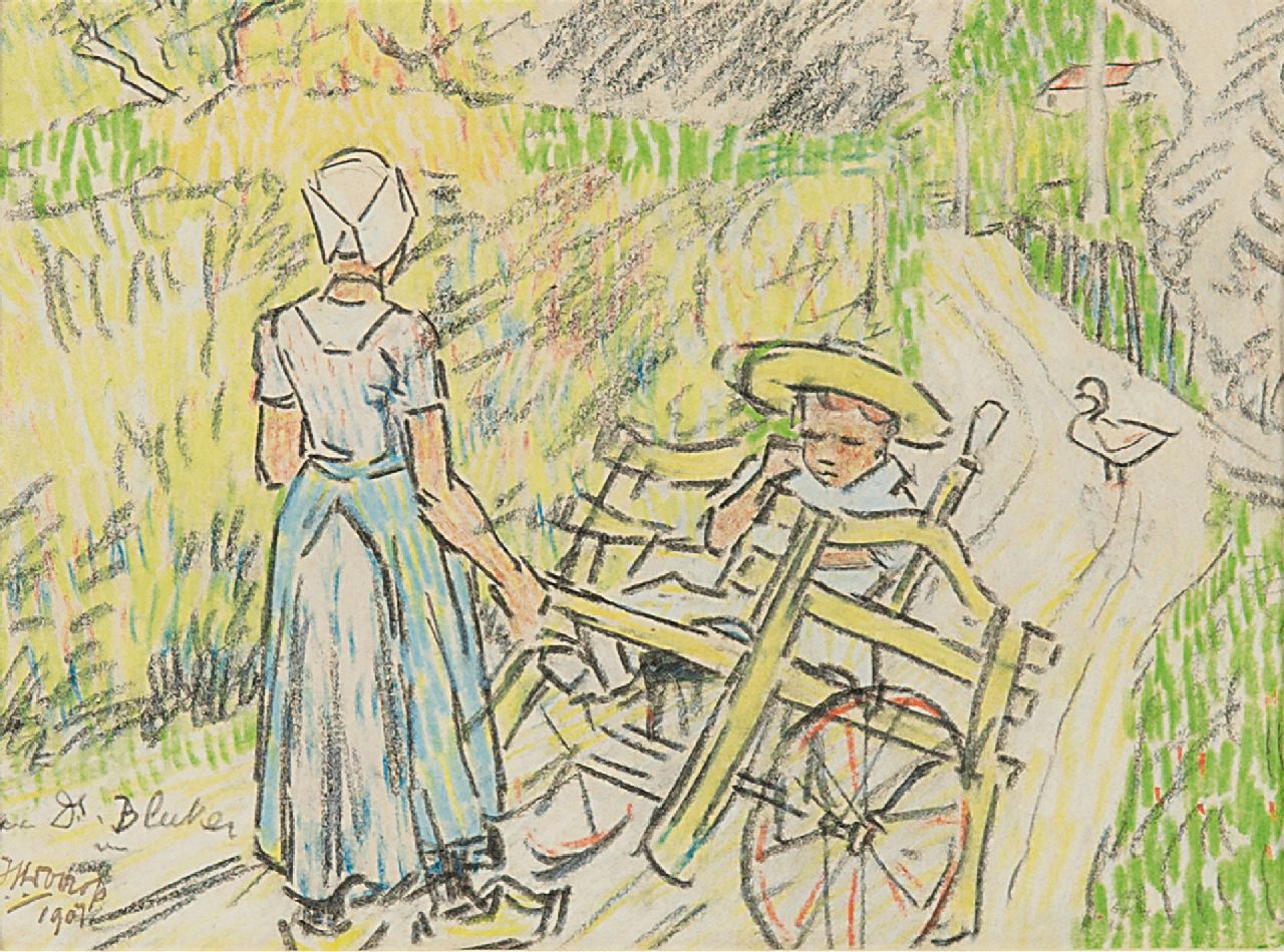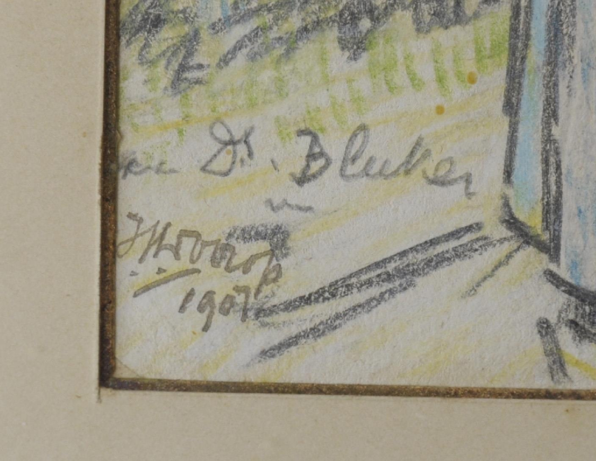 gekleurd krijt op papier 11,0 x 15,1 cm, gesigneerd linksonder en gedateerd 1907