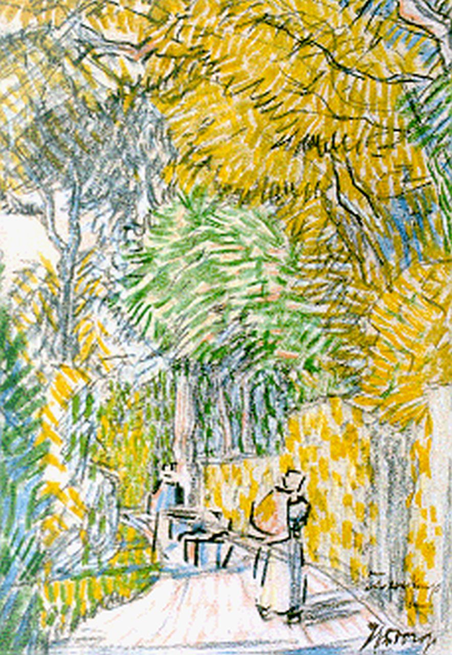 Jan Toorop kunstwerk • aquarel • tekening • voorheen te koop Laantje met wandelaars