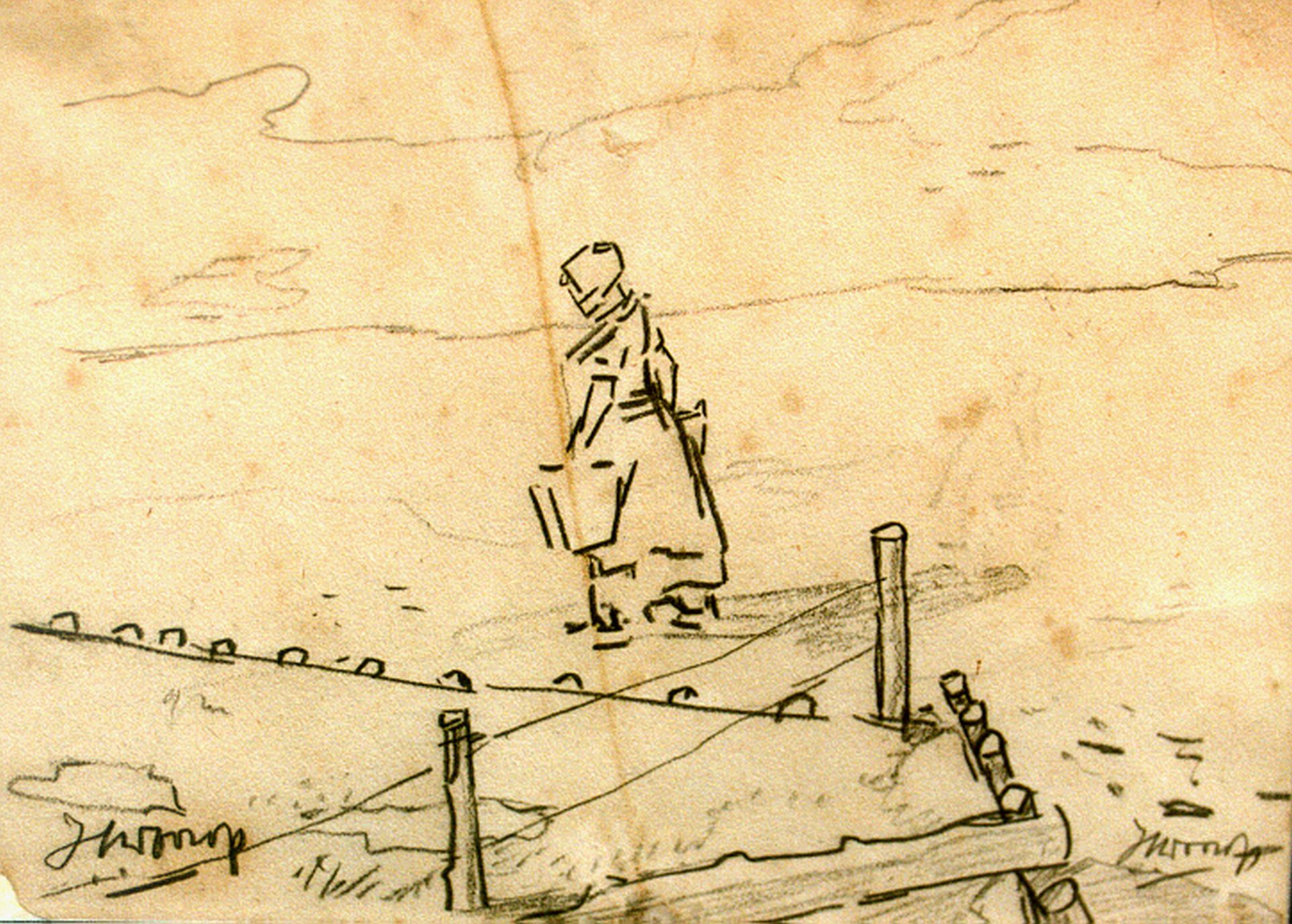 Jan Toorop | Zwervers op de duinen, pen en inkt op papier, 12,1 x 14,4 cm, gesigneerd r.o. en gedateerd m.o. 1890