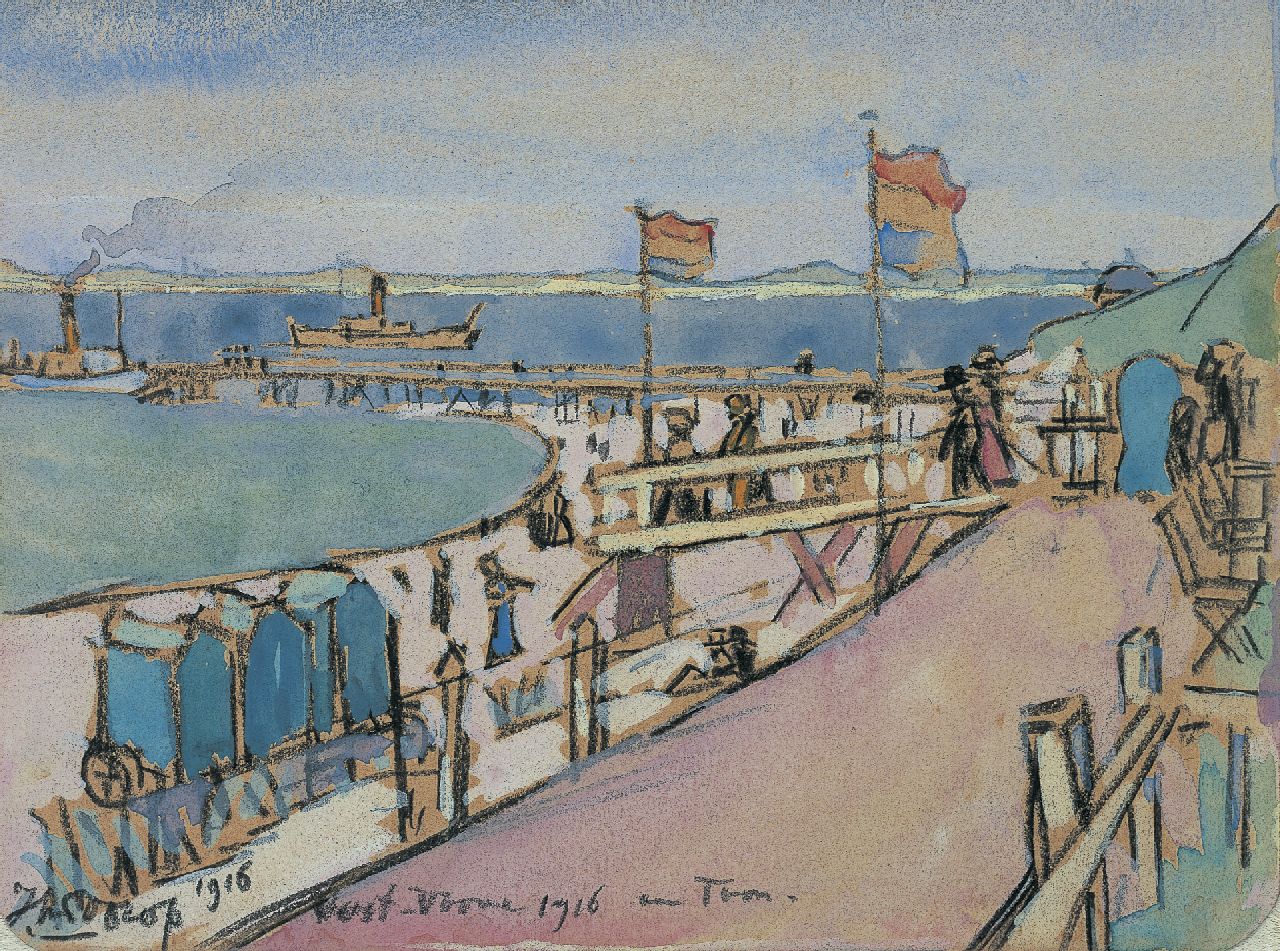 Jan Toorop kunstwerk • aquarel • tekening • voorheen te koop Strand te Oost-Voorne