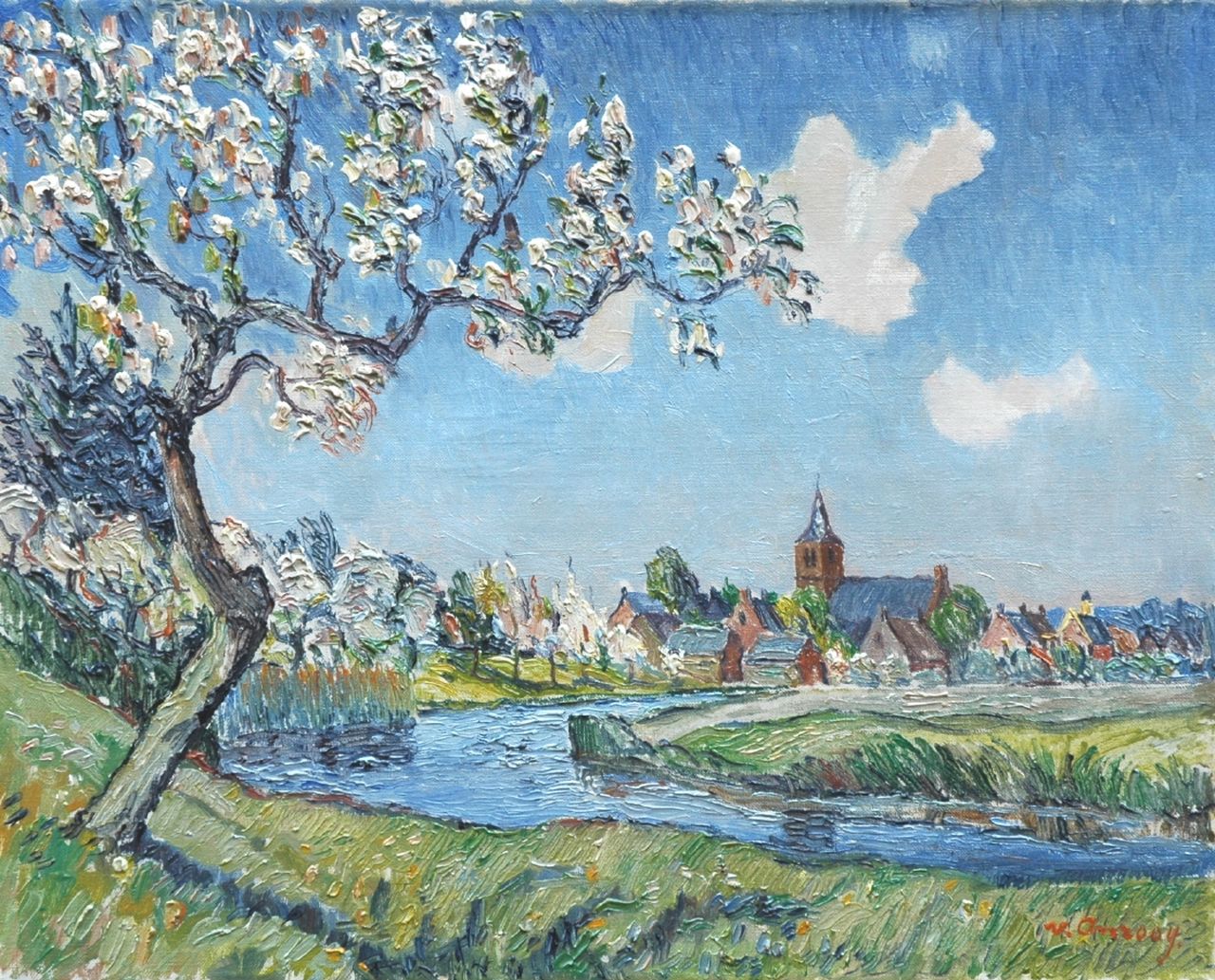 Jan van Anrooij kunstwerk • schilderij • voorheen te koop Gezicht op Deil aan de Linge