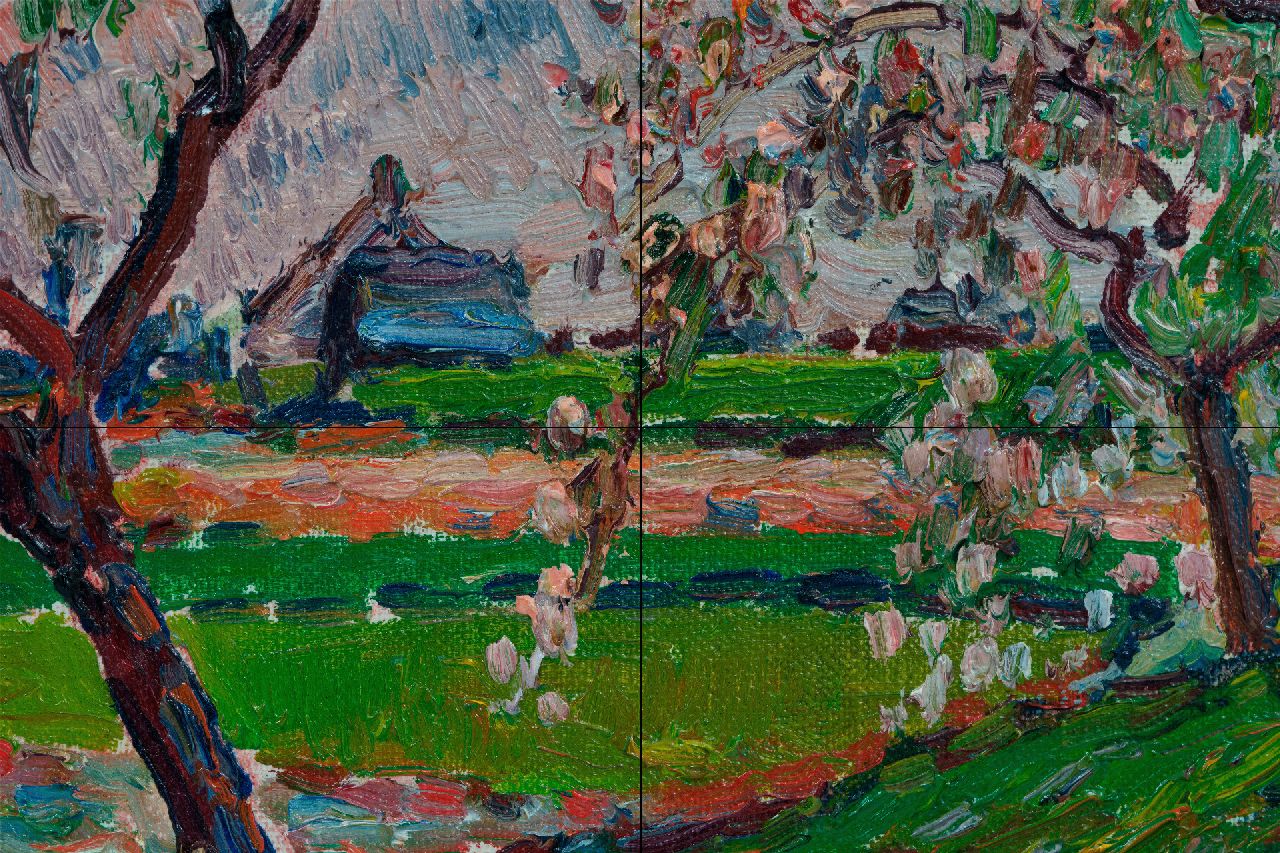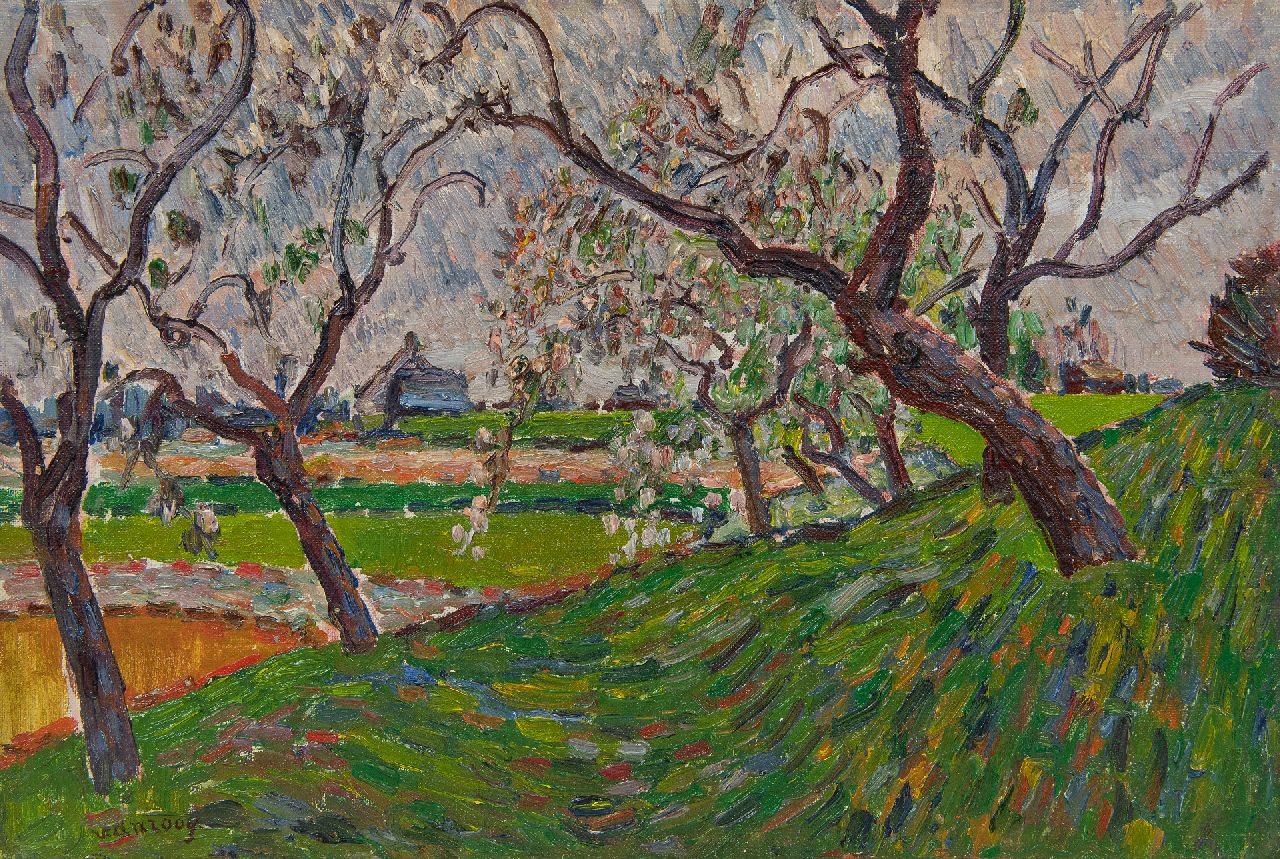 Jan van Anrooij kunstwerk • schilderij • voorheen te koop Landschap met bloesembomen