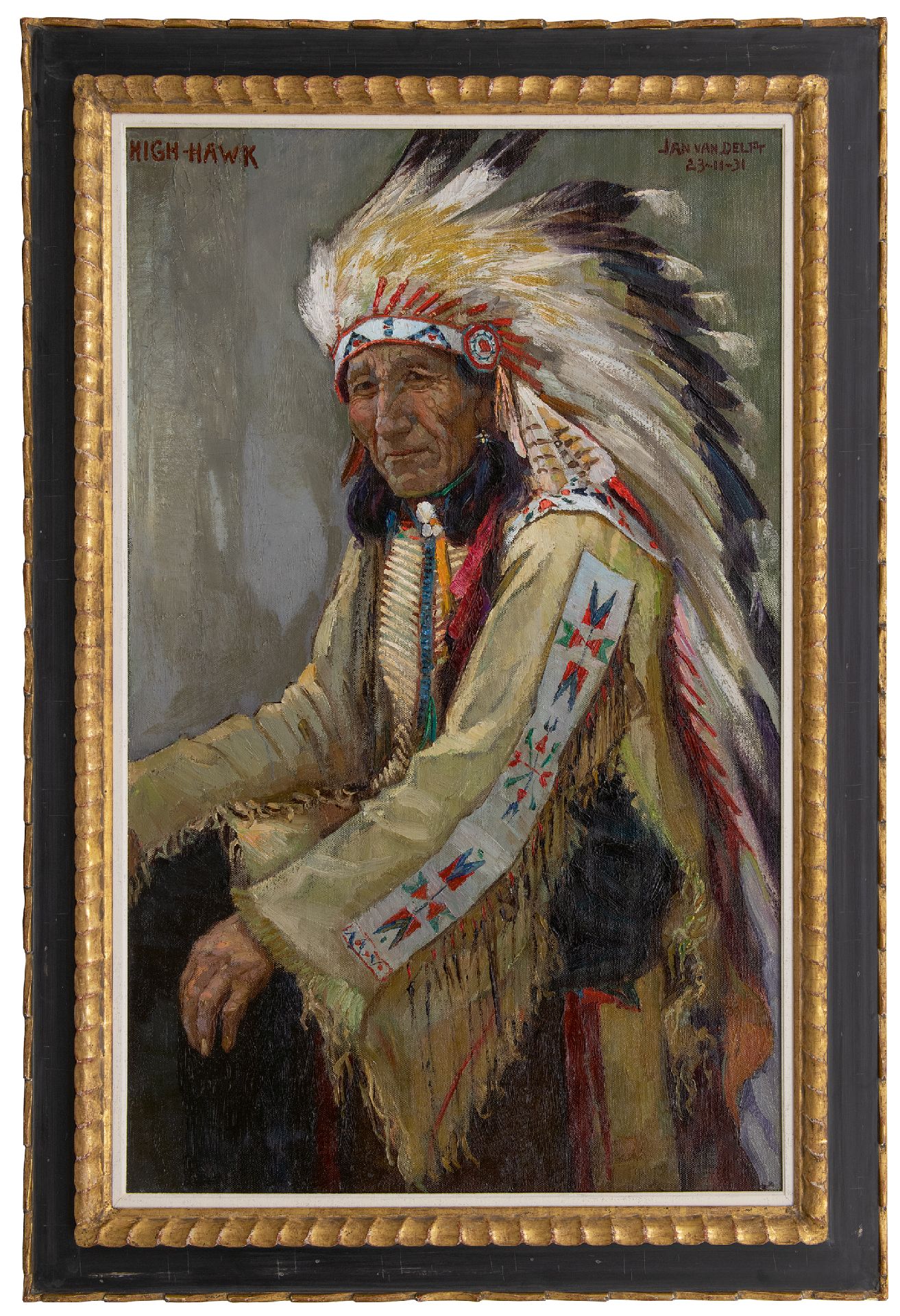 Jan van Delft kunstwerk • schilderij • voorheen te koop Chief High Hawk
