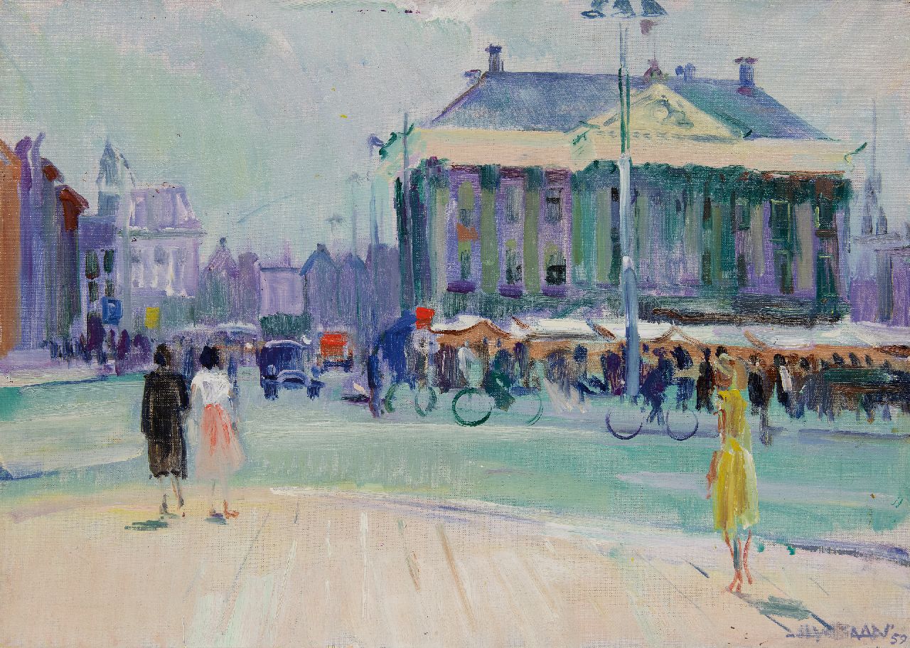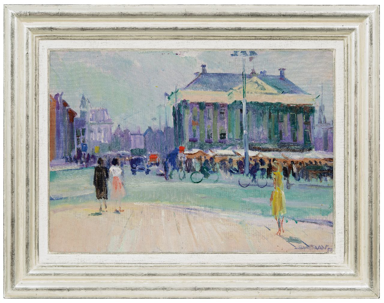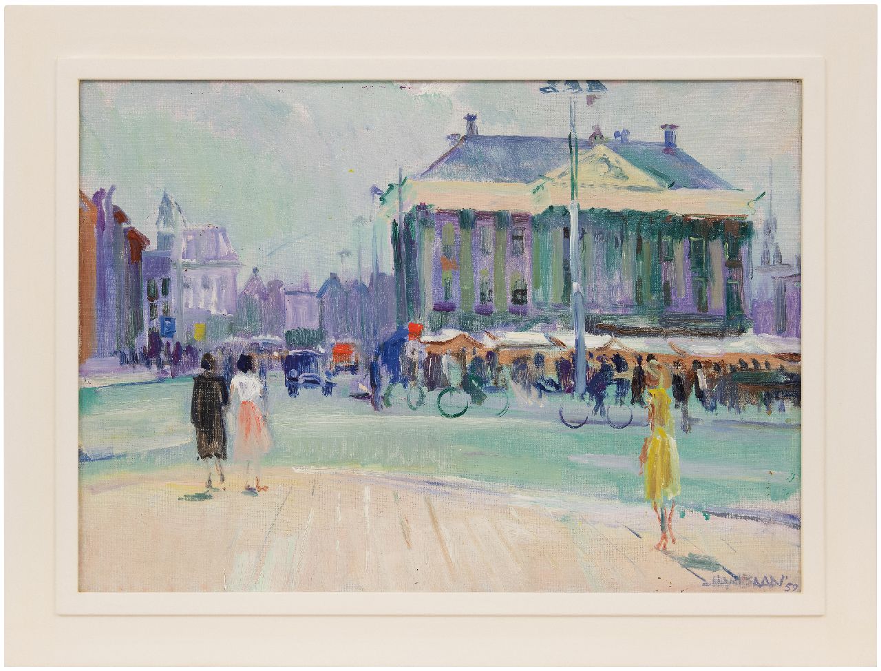 Jan van der Baan kunstwerk • schilderij • voorheen te koop De Grote Markt in Groningen, 1959
