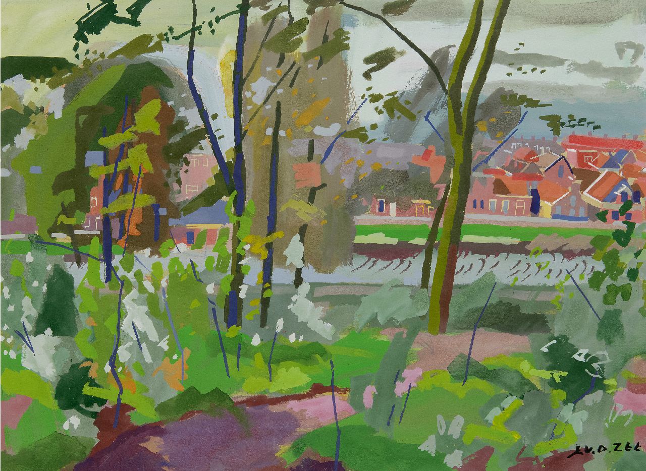 Jan van der Zee kunstwerk • aquarel • tekening • voorheen te koop Noorderplantsoen met de Grachtstraat, Groningen