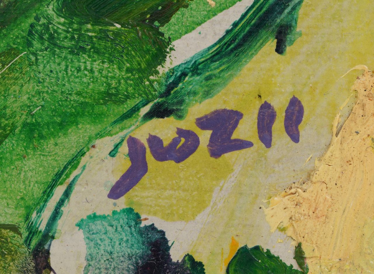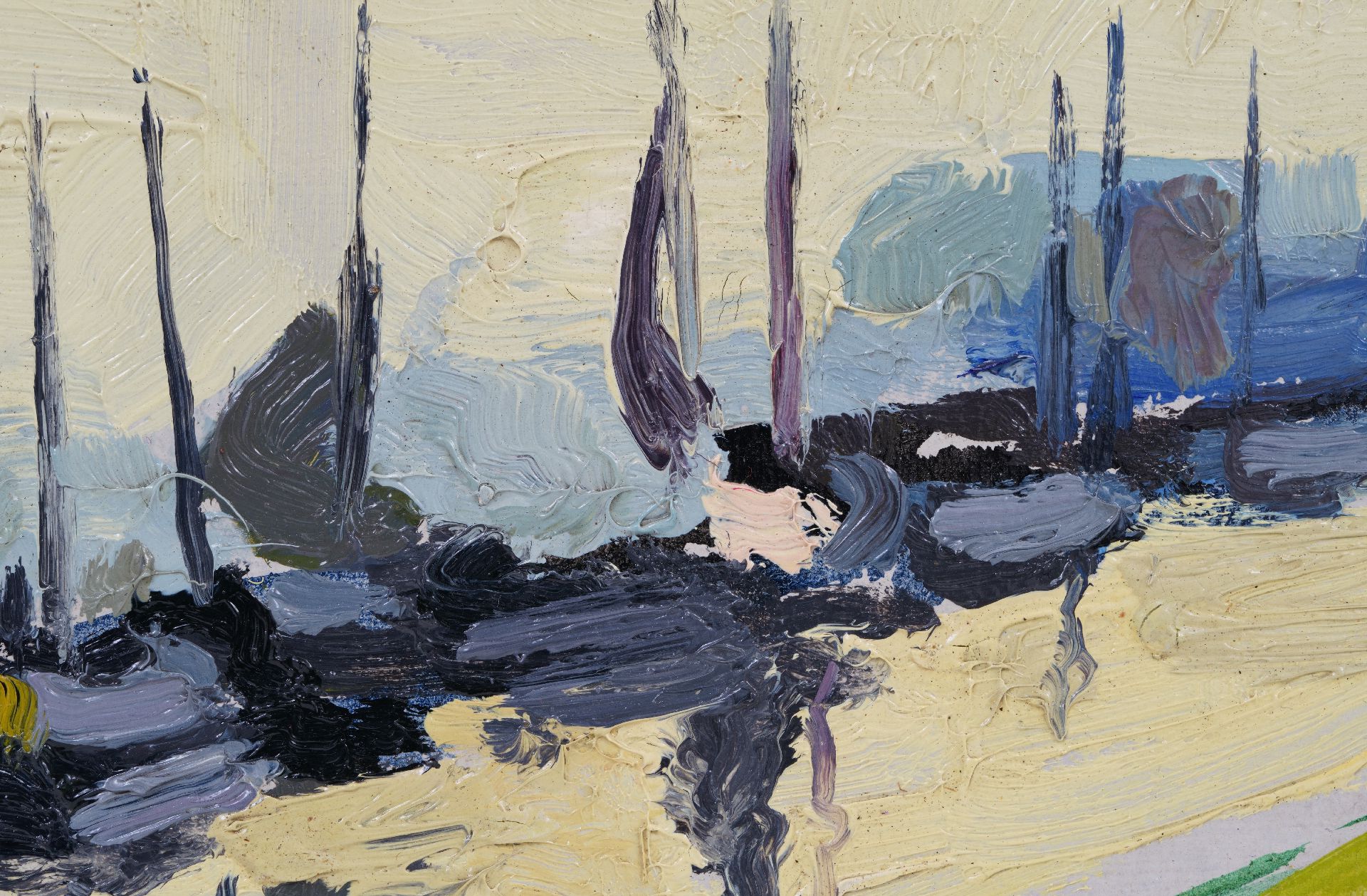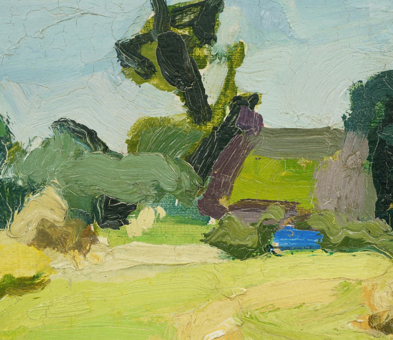 Jan van der Zee kunstwerk • schilderij • voorheen te koop Schepen in het Damsterdiep; verso: Zomerlandschap