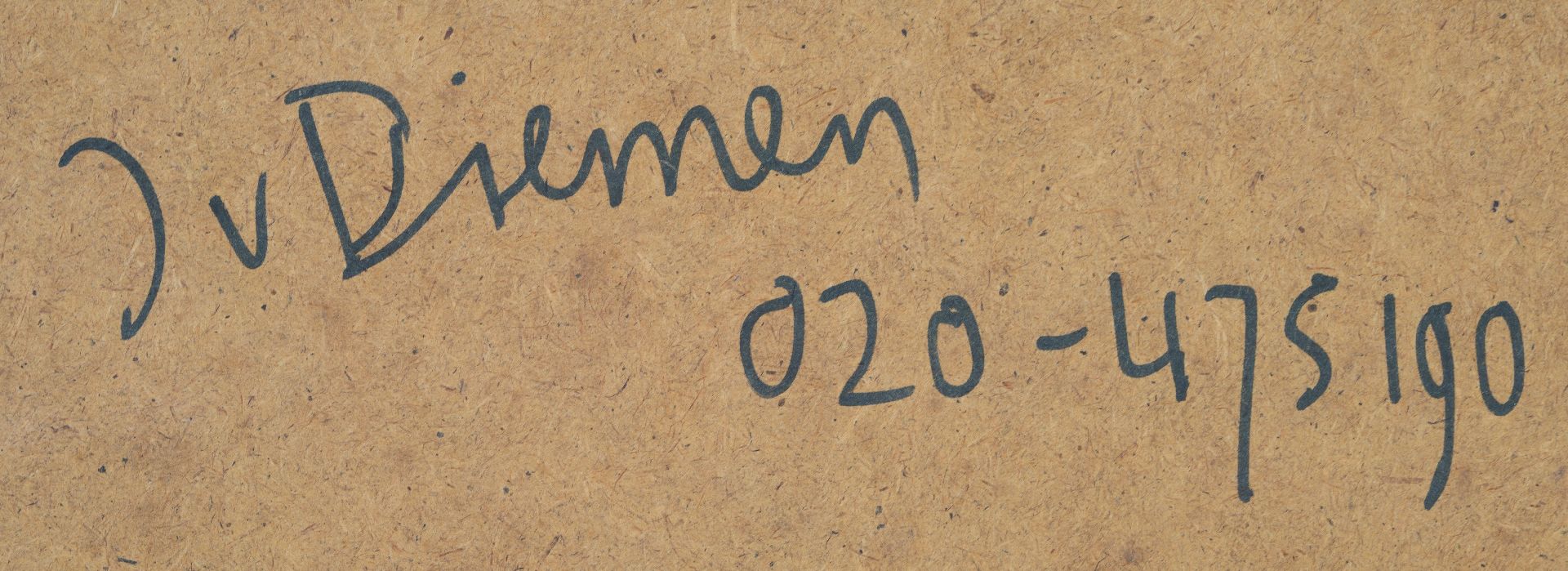 Jan van Diemen staat bekend om zijn tekeningen en schilderijen van sport. In een abstract-expressionistische stijl weet hij de dynamiek van de sporter en zijn omgeving in felle kleuren en energieke lijnen vast te leggen. Zijn werk doet denken aan dat van Kees van Bohemen en Pieter Defesche. Hoewel zijn werken soms heel abstract zijn, blijft de vorm en de voorliefde voor sport altijd herkenbaar. Van Diemen exposeert in binnen- en buitenland. Er zijn meerdere boeken over zijn werk gepubliceerd.