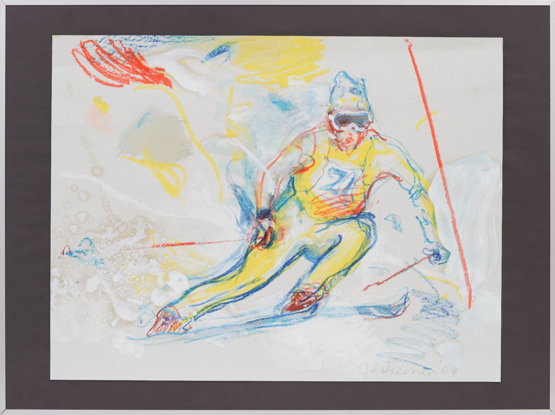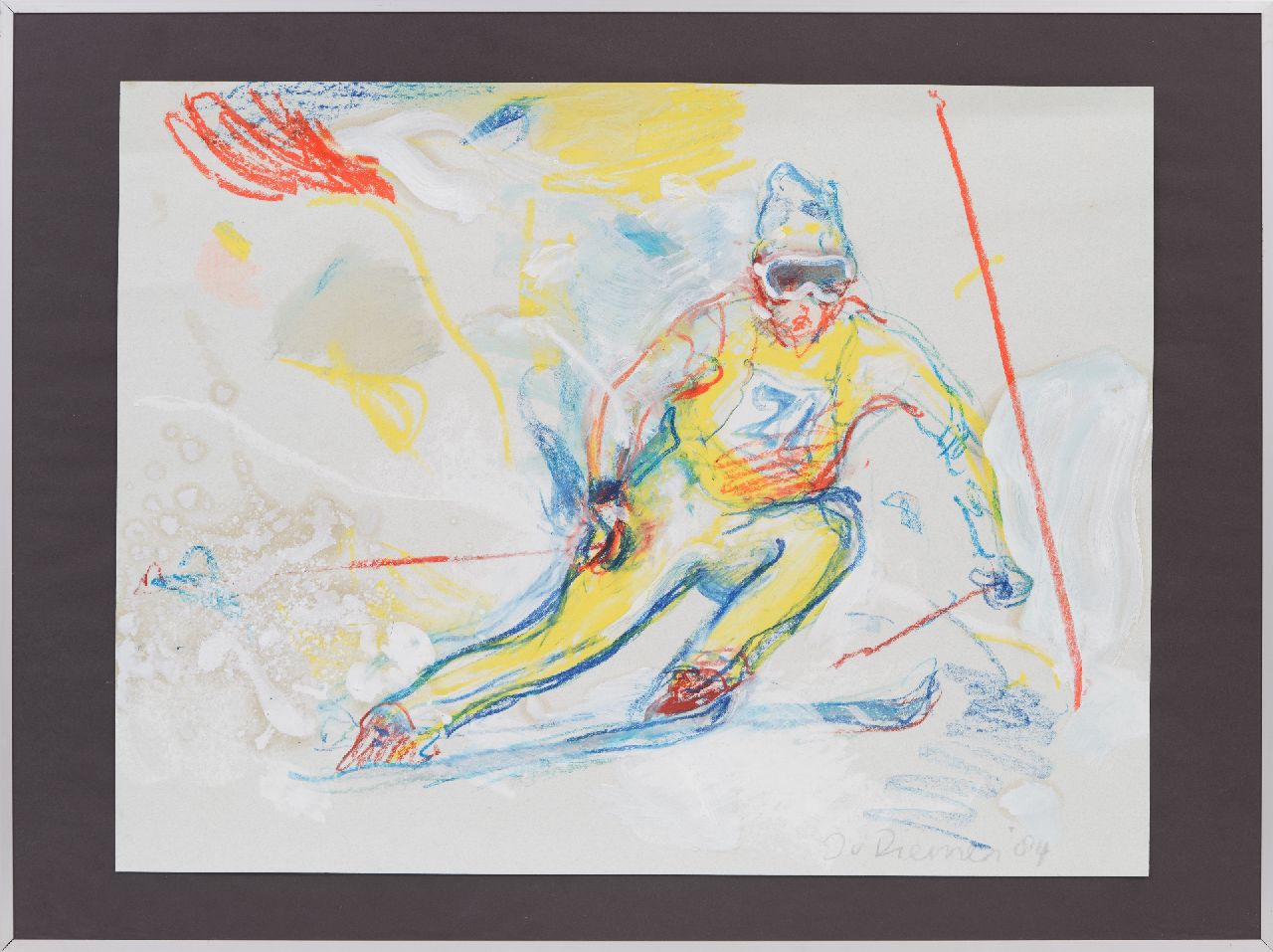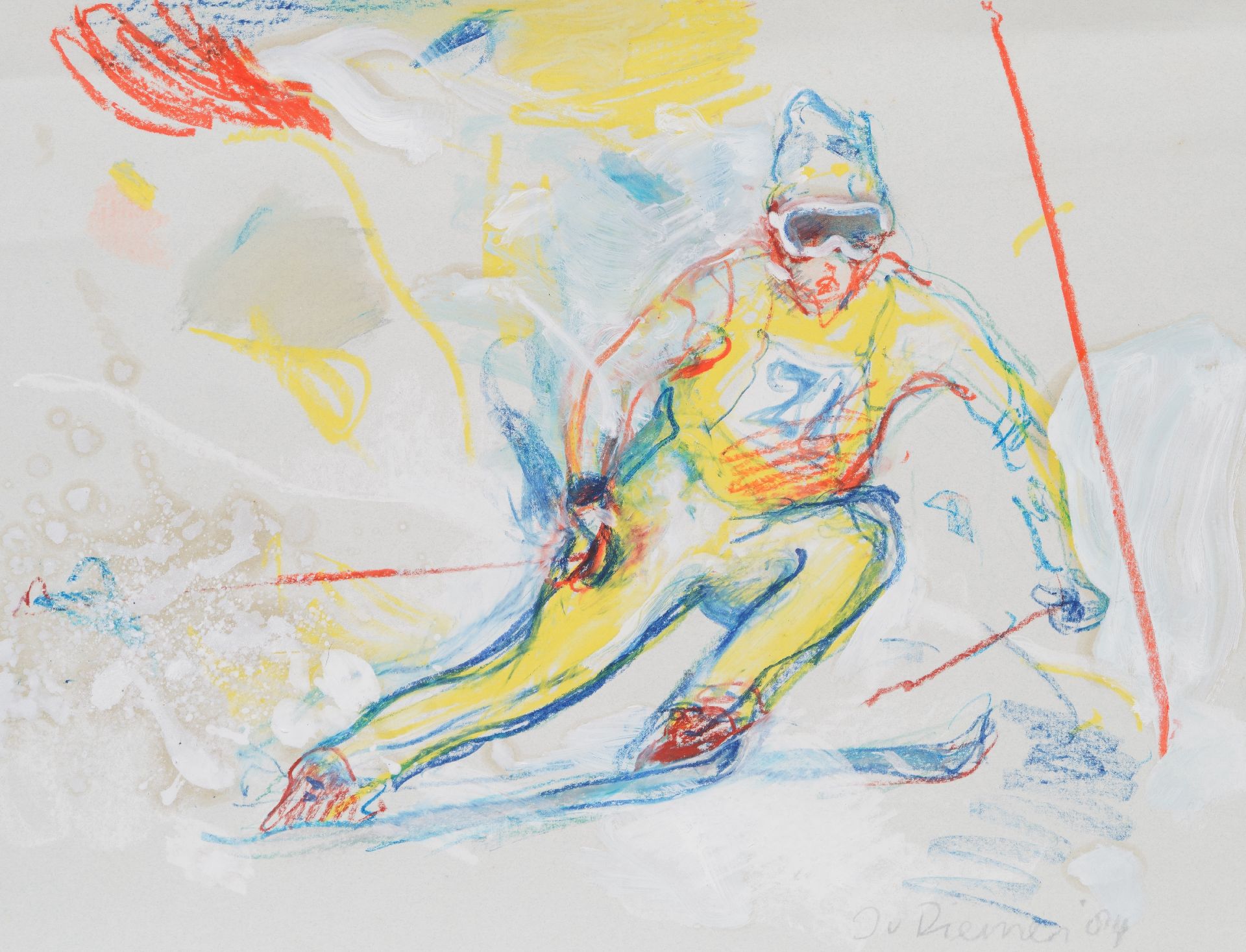 Jan van Diemen kunstwerk • aquarel • tekening • voorheen te koop Slalom skiër