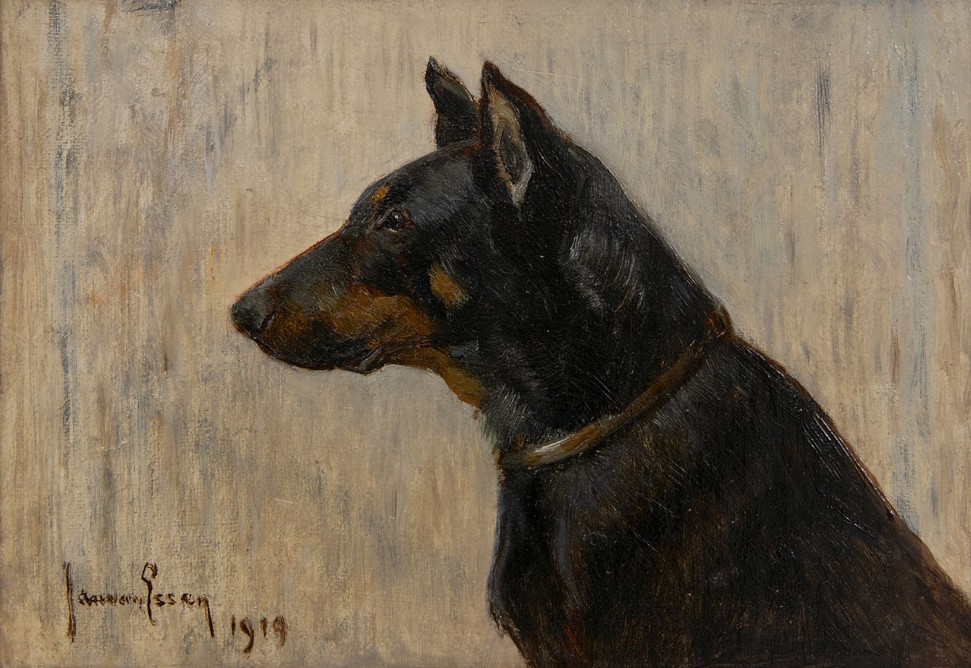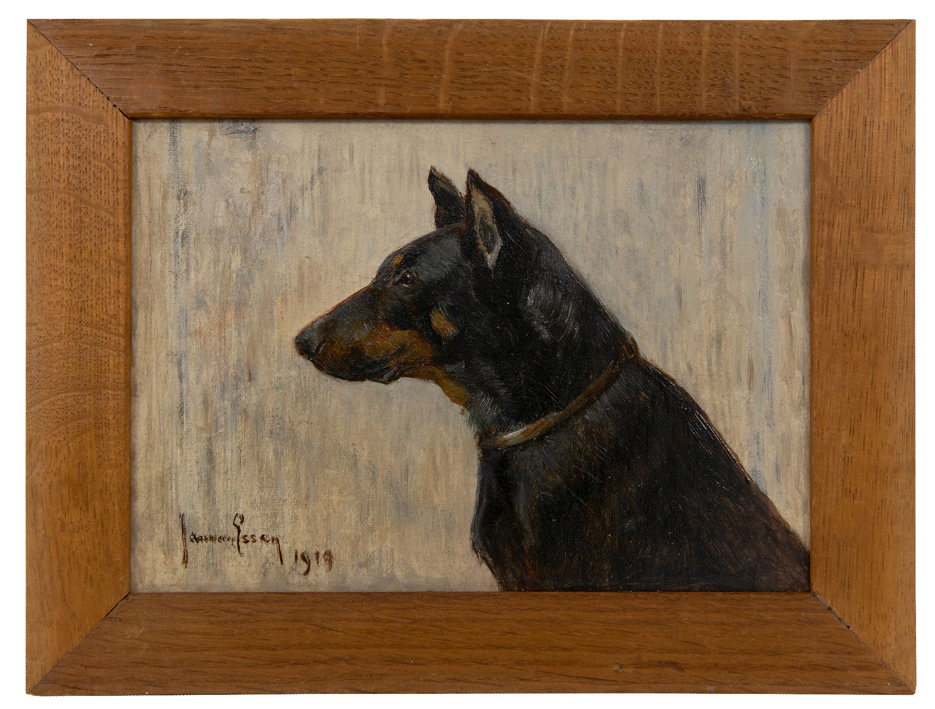 Jan van Essen kunstwerk • schilderij • te koop Portret van een Duitse pinscher