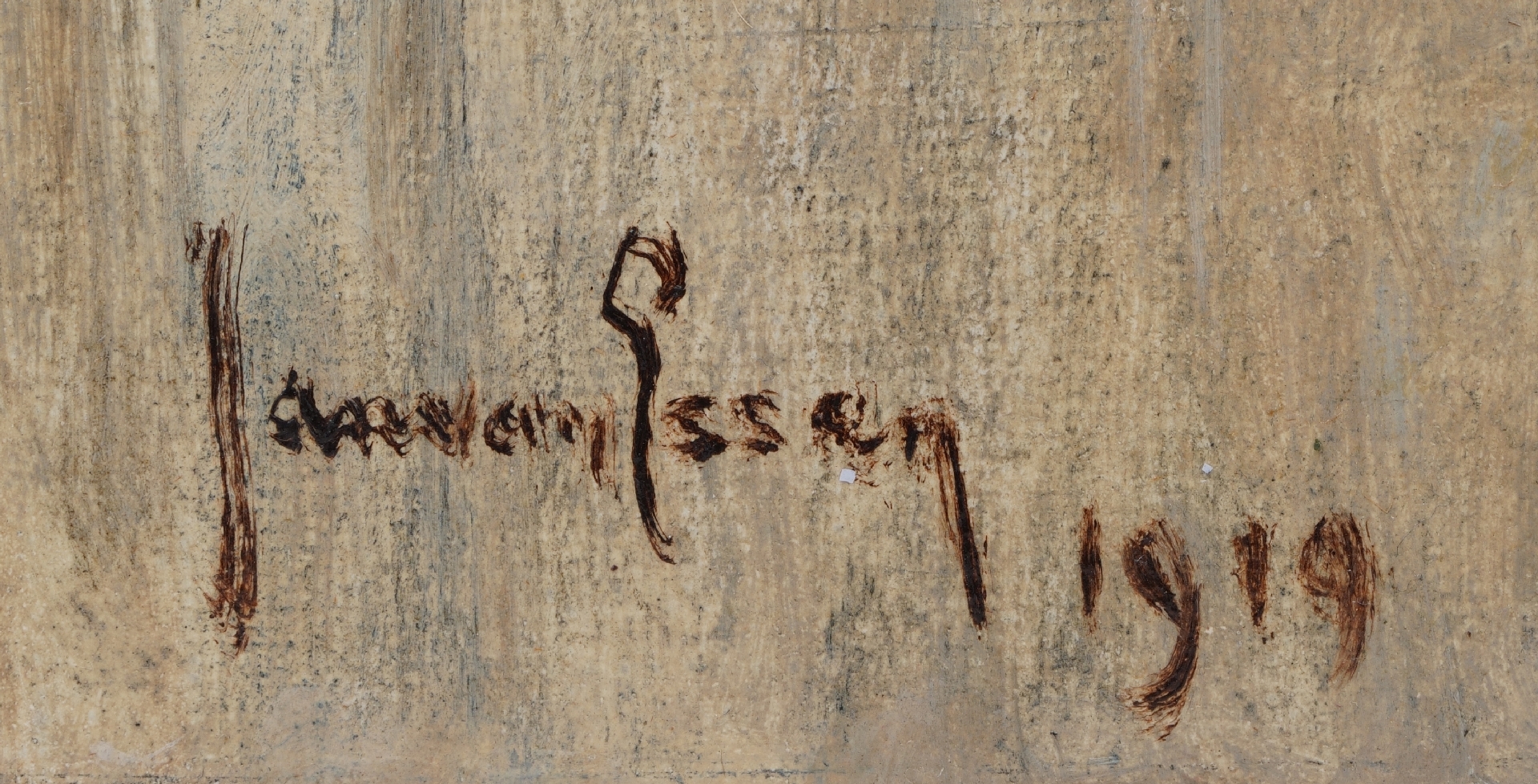 olieverf op doek op board 15,7 x 21,5 cm, gesigneerd linksonder en gedateerd 1919