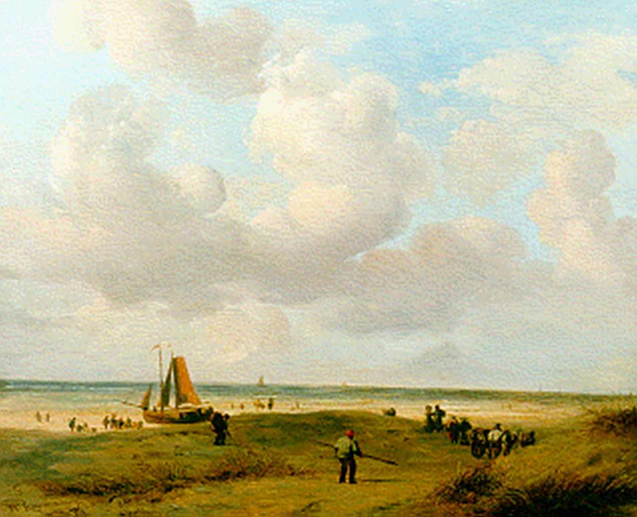 Jan van Ravenswaay kunstwerk • schilderij • voorheen te koop Strandgezicht met vissersvolk en een zeilschip