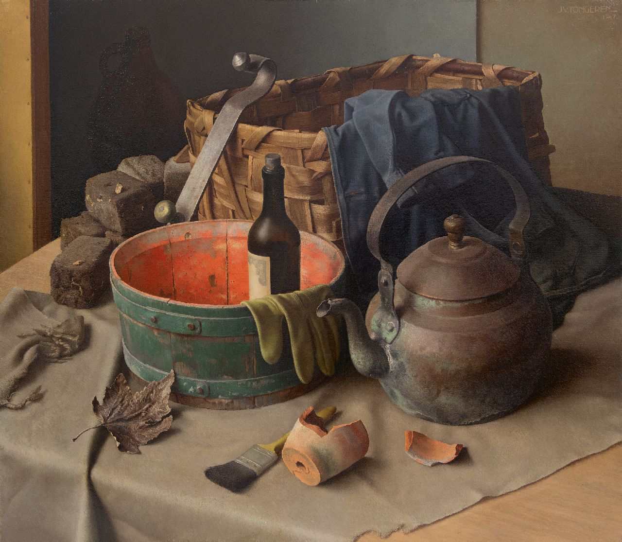 Het werk van Jan van Tongeren wordt gerekend tot het nieuwe realisme, een stroming waartoe ook dat van Dick Ket en Raoul Hynckes behoort. Kenmerkend voor het werk van de schilder is de realistische manier waarop hij de materialen weergeeft: het aardewerk van potten, perkamenten boekomslagen of een geweven kleed. De essentie van een dergelijk stilleven lag voor de schilder in de plaatsing van de voorwerpen ten opzichte van elkaar en de ruimten ertussen, waardoor de voorstelling in vlakken en vormen gedacht kon worden. Hij kon dan ook dagenlang bezig zijn met het schikken van de voorwerpen tot een afgewogen compositie. Na 1945 werden kleuren steeds belangrijker in zijn werk, ten koste van de realistische stofuitdrukking.