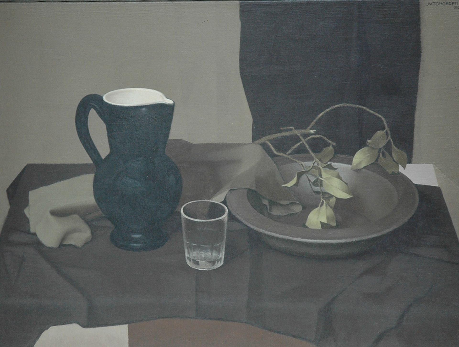 Jan van Tongeren kunstwerk • schilderij • voorheen te koop Tinnen schaal met kan