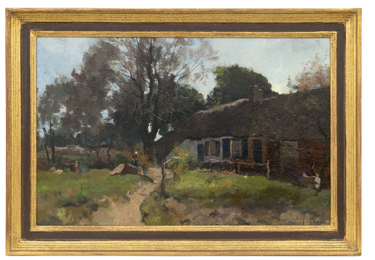 Jan van Vuuren kunstwerk • schilderij • te koop Boerin aan het werk op boerenerf