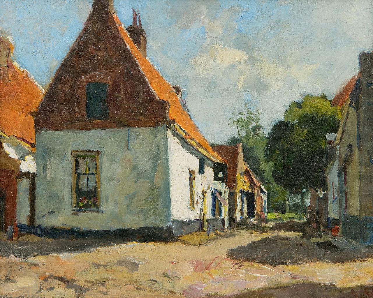 Jan van Vuuren kunstwerk • schilderij • te koop Zonnig straatje in Elburg