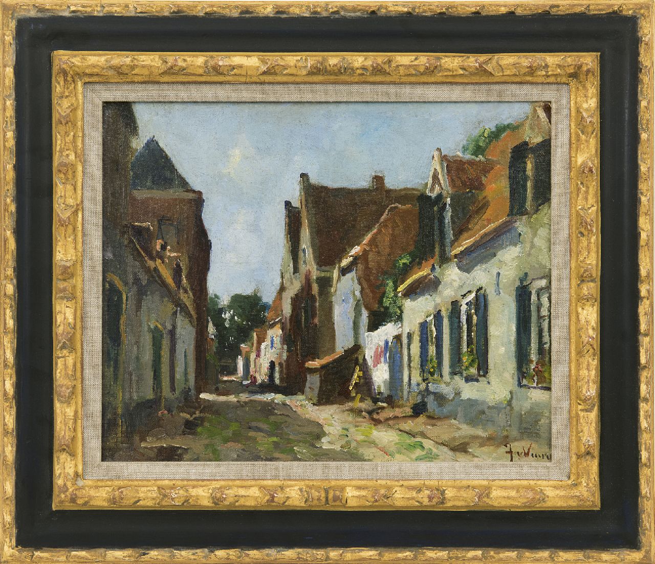 Jan van Vuuren kunstwerk • schilderij • voorheen te koop Zonnig straatje in Elburg