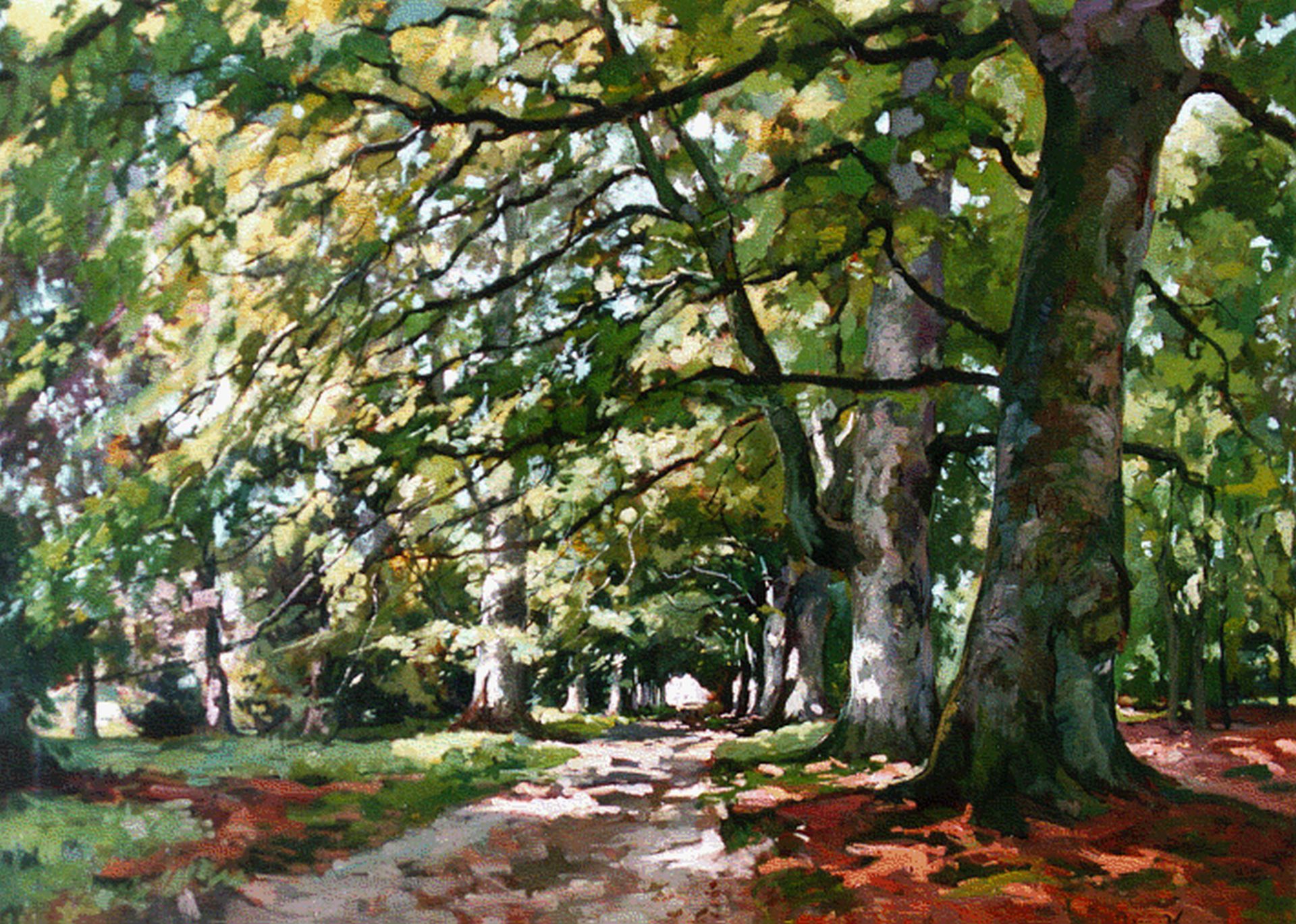 Jan van Vuuren kunstwerk • schilderij • voorheen te koop Zonnige boslaan