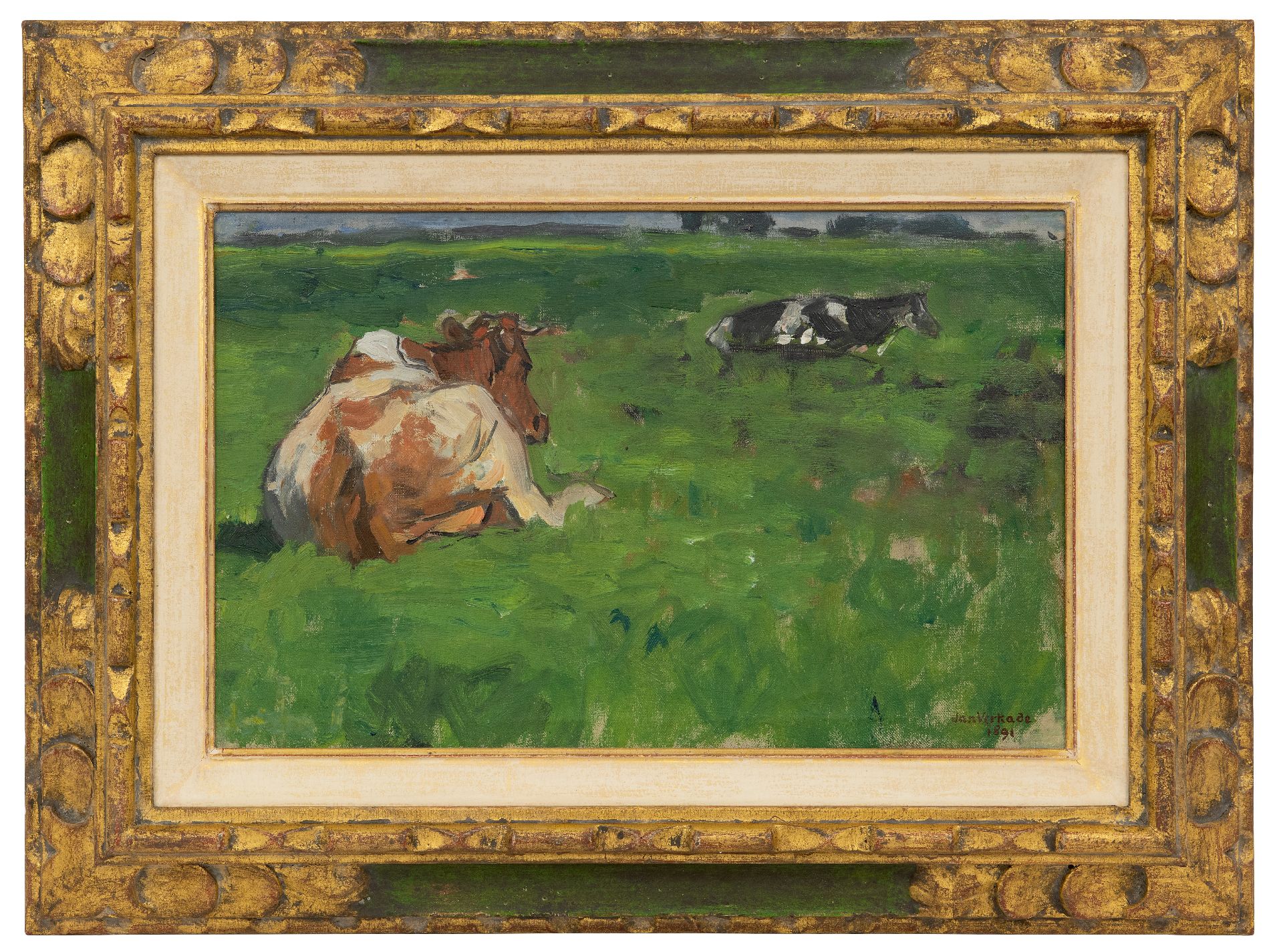 Jan Verkade kunstwerk • schilderij • te koop Rustende koeien in een weiland