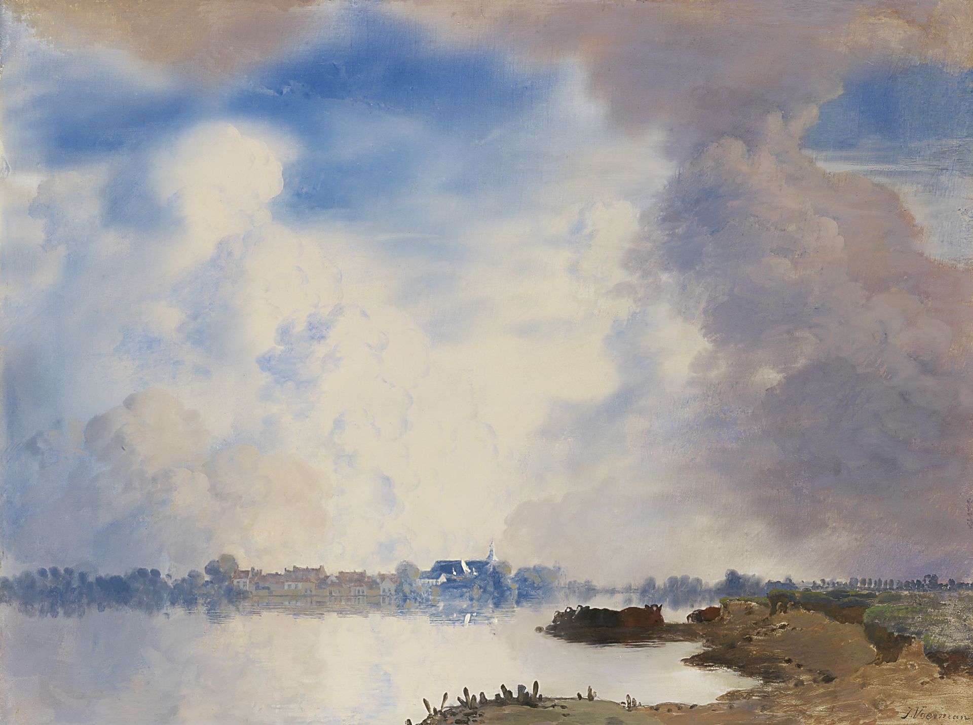Jan Voerman sr. kunstwerk • schilderij • voorheen te koop De IJssel bij Hattem
