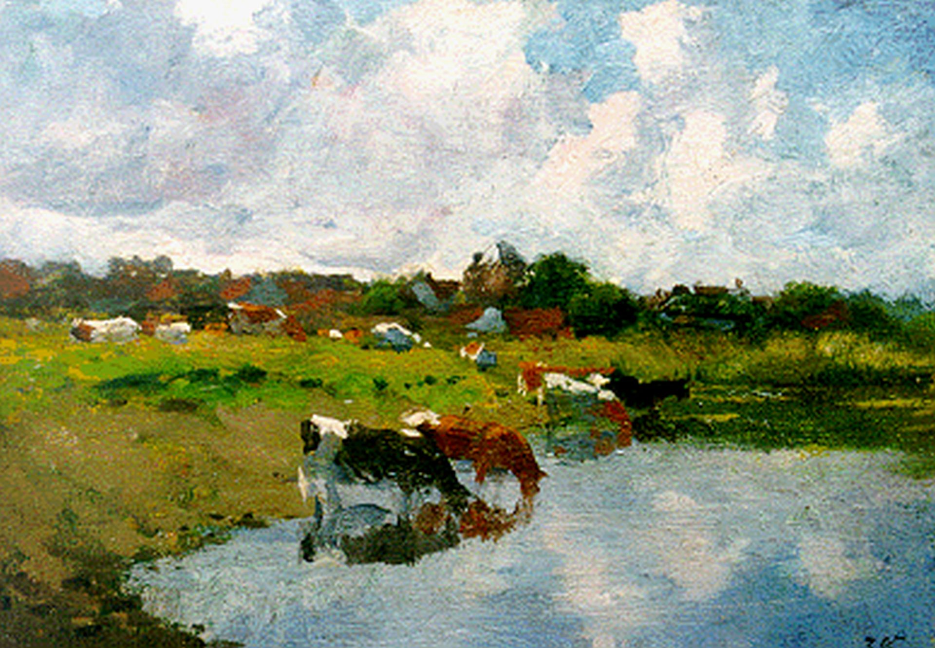 Jan Voerman sr. kunstwerk • schilderij • voorheen te koop Drinkende koeien