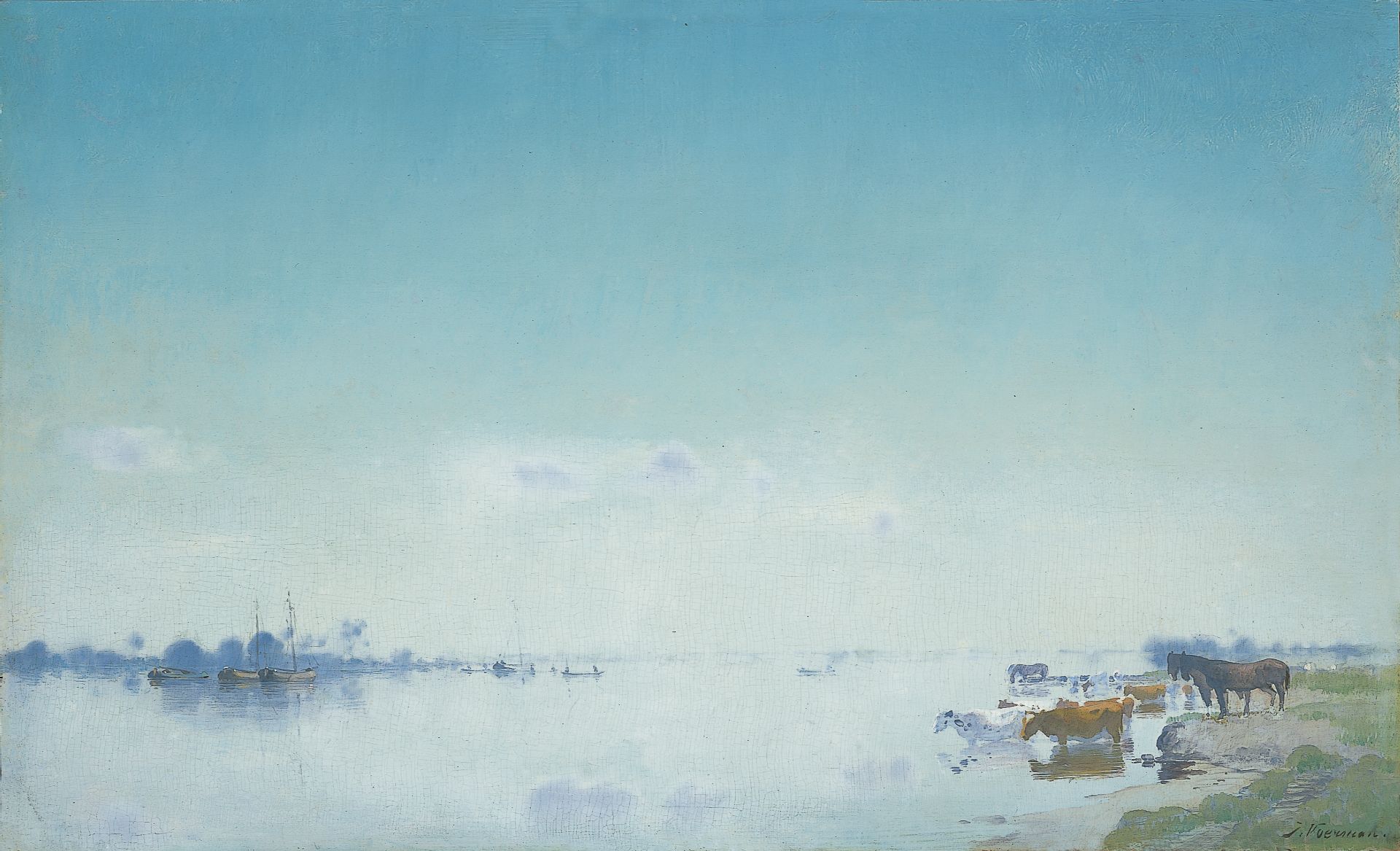 Jan Voerman sr. kunstwerk • schilderij • voorheen te koop Gezicht op de IJssel bij Hattem