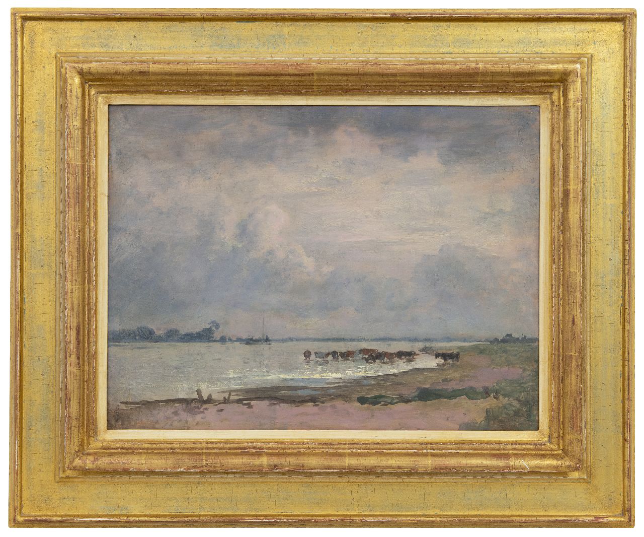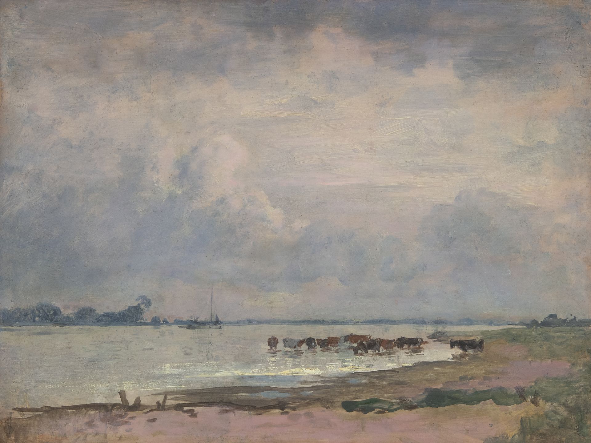Jan Voerman sr. kunstwerk • schilderij • te koop Gezicht op de IJssel met wadende koeien