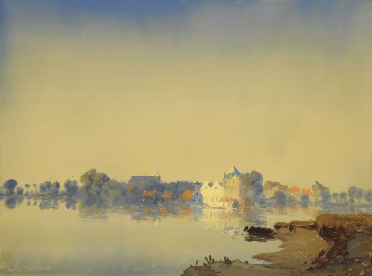 Jan Voerman sr. kunstwerk • schilderij • voorheen te koop Gezicht op Hattem