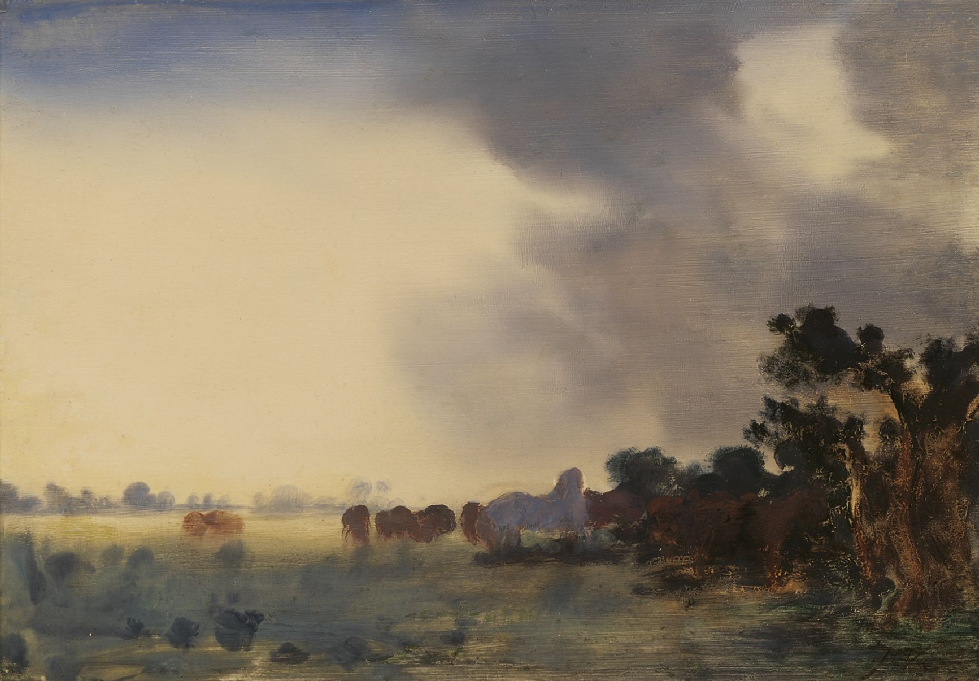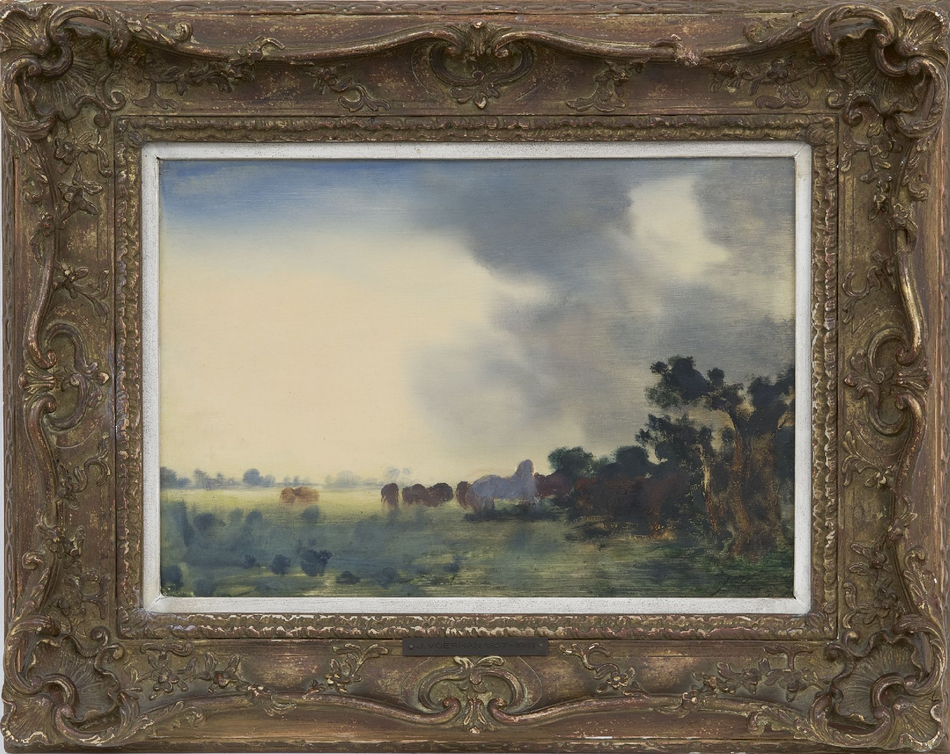 olieverf op paneel 22,0 x 32,0 cm, gesigneerd rechtsonder met initialen