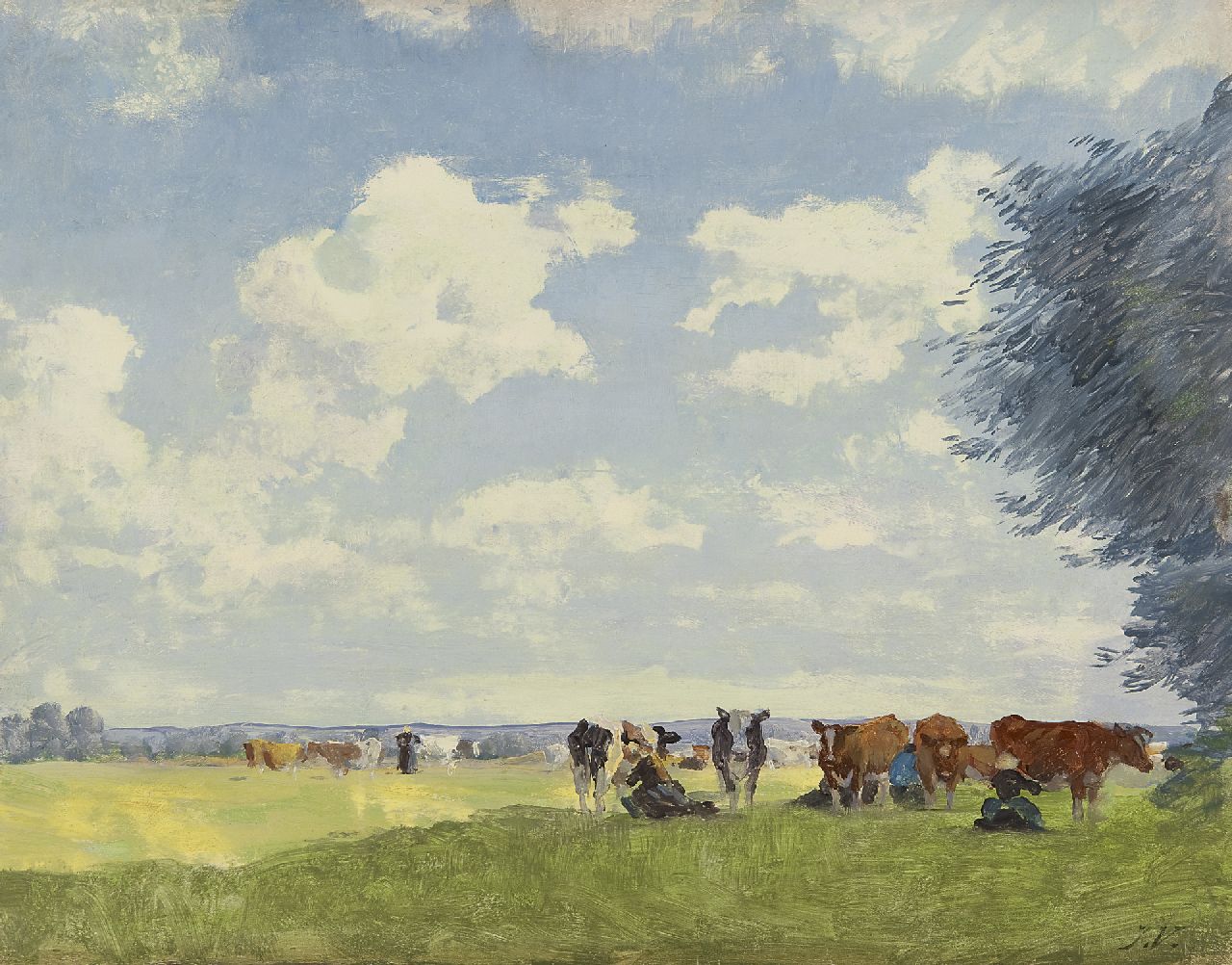 Jan Voerman sr. kunstwerk • schilderij • voorheen te koop Melktijd in de schaduw